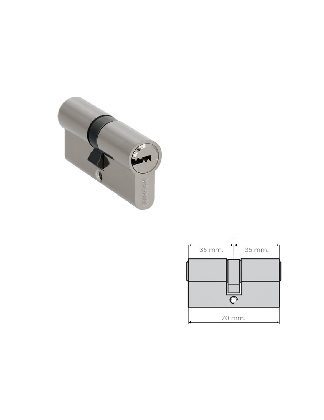 Cilindro Seguridad 35x35 mm. Leva Larga Niquelado Con 5 llaves