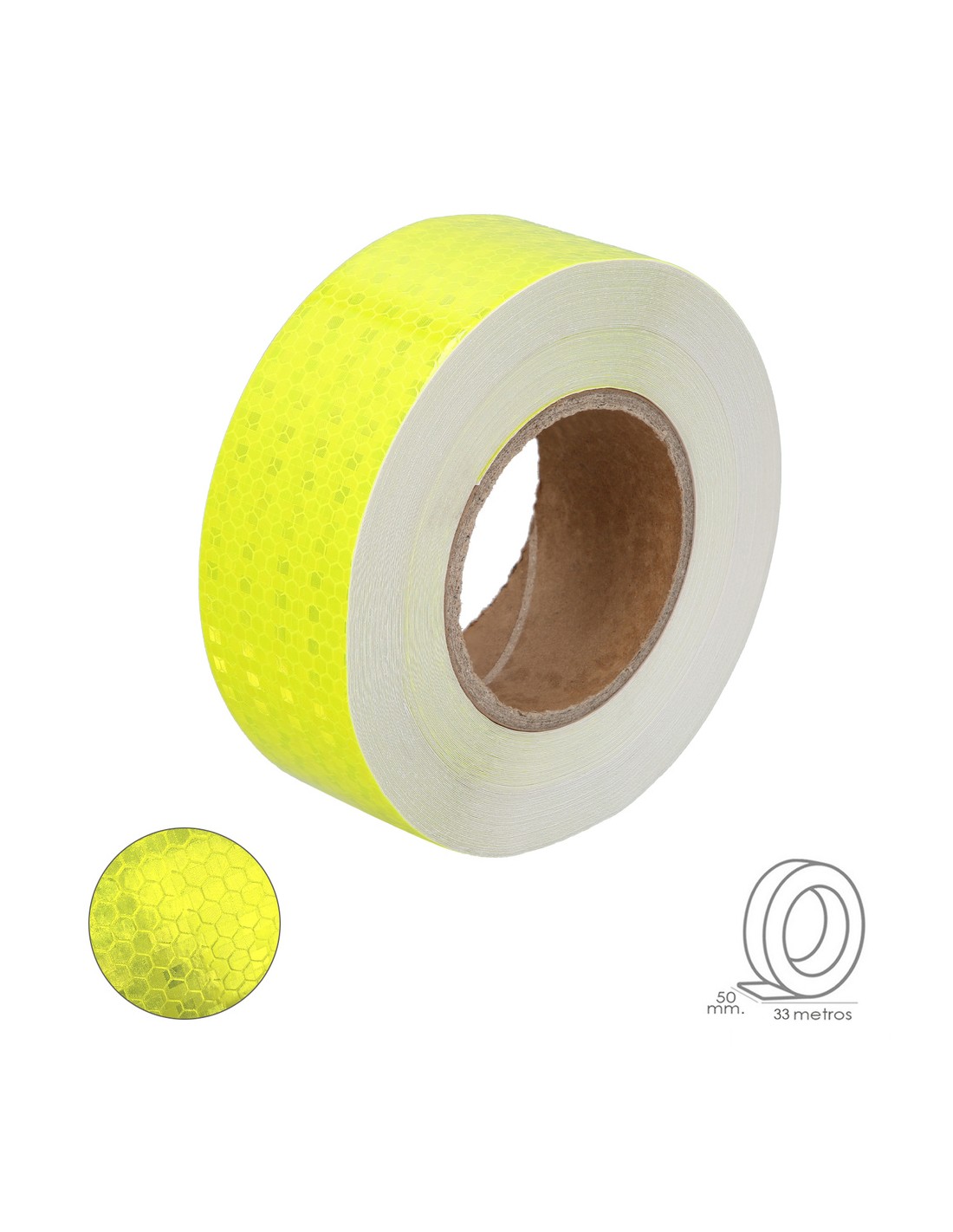 Cinta Adhesiva Reflectante Amarillo Claro 50 mm. x 33 metros. Uso doméstico.