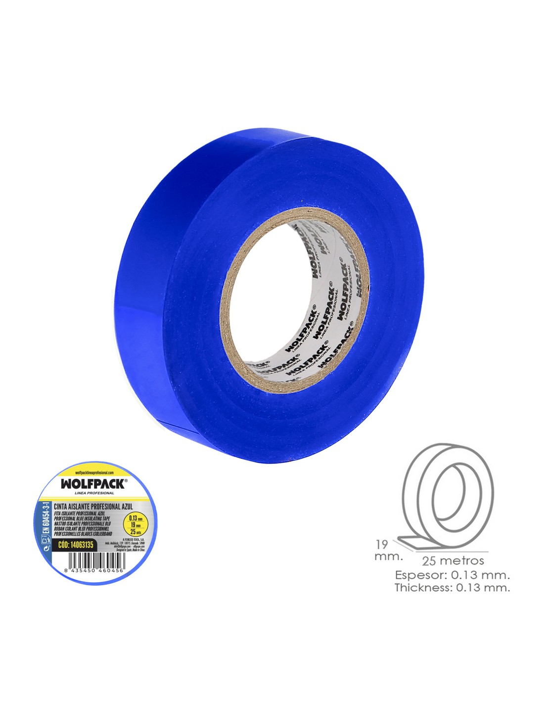 Cinta Aislante Profesional Azul Espesor 0.13 mm. Ancho 19 mm. Rollo 25 Metros Cinta Electricista, Cinta Aislante Cable