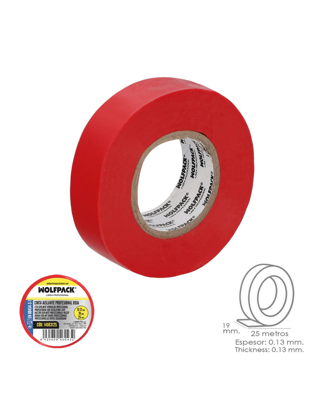 Cinta Aislante Profesional Roja Espesor 0.13 mm. Ancho 19 mm. Rollo 25 Metros Cinta Electricista, Cinta Aislante Cables