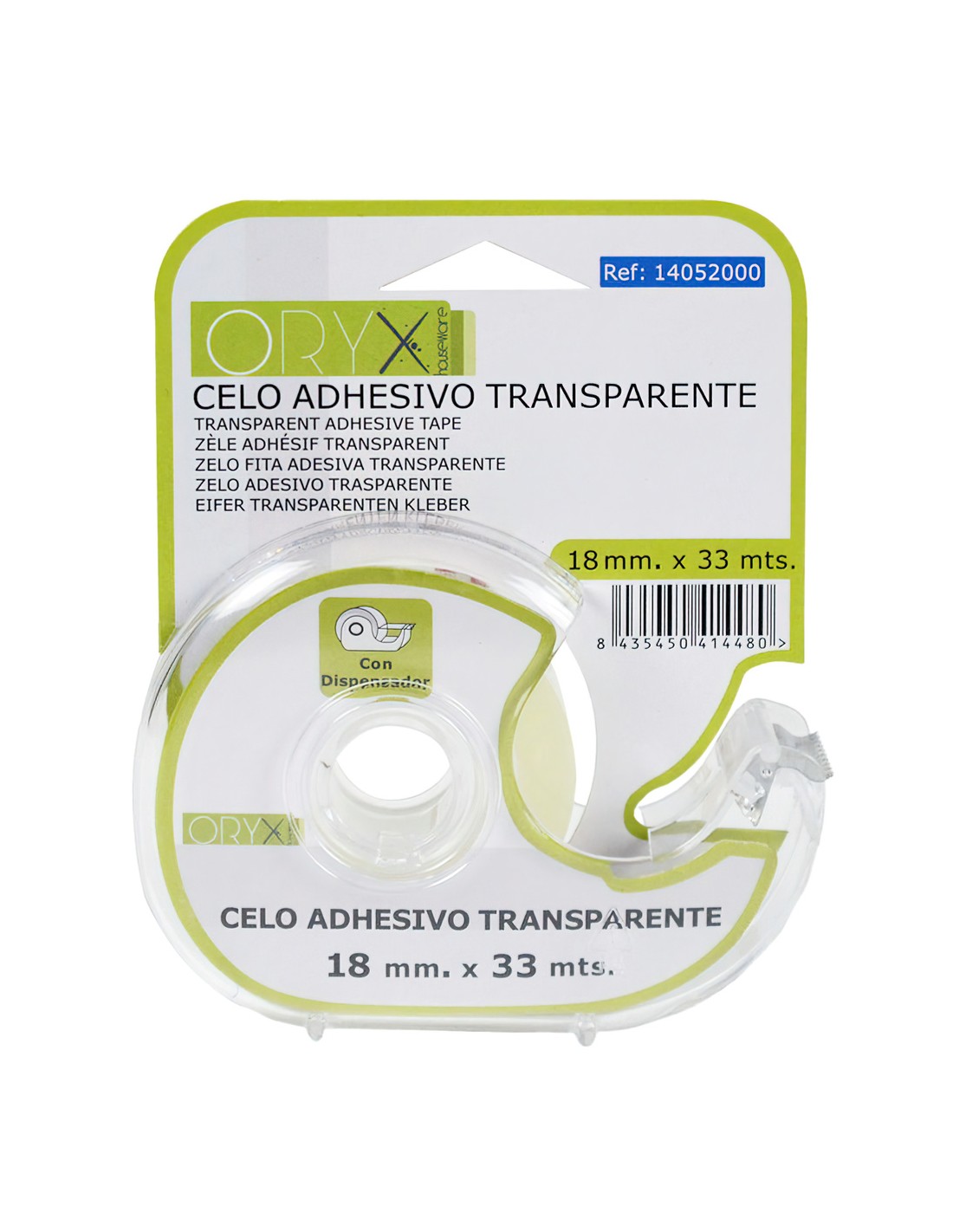 Cinta Celo Adhesivo Transparente 18 mm. x 33 Mts. Con Dispensador.