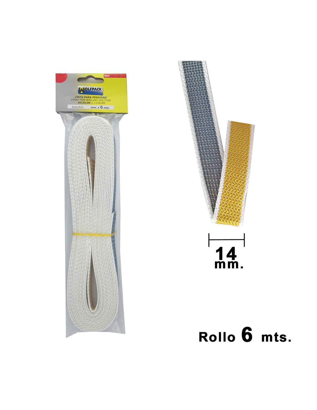 Cinta Persiana Wolfpack Bicolor 14 mm. Rollo 6 metros