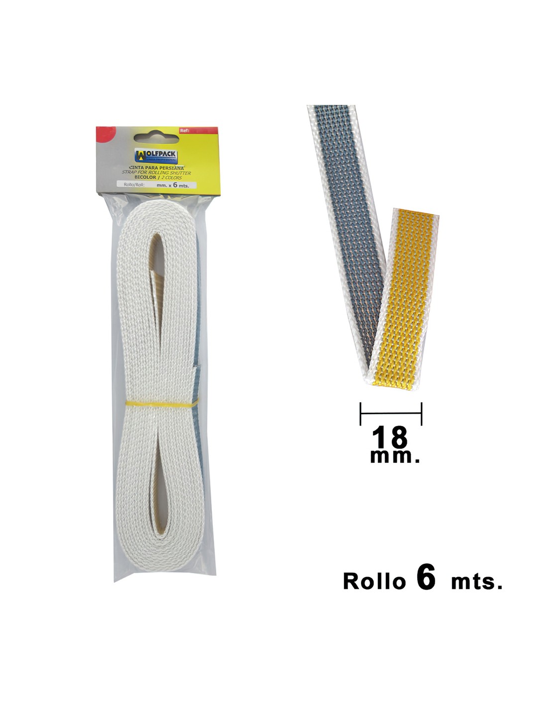 Cinta Persiana Wolfpack Bicolor 18 mm. Rollo 6 metros
