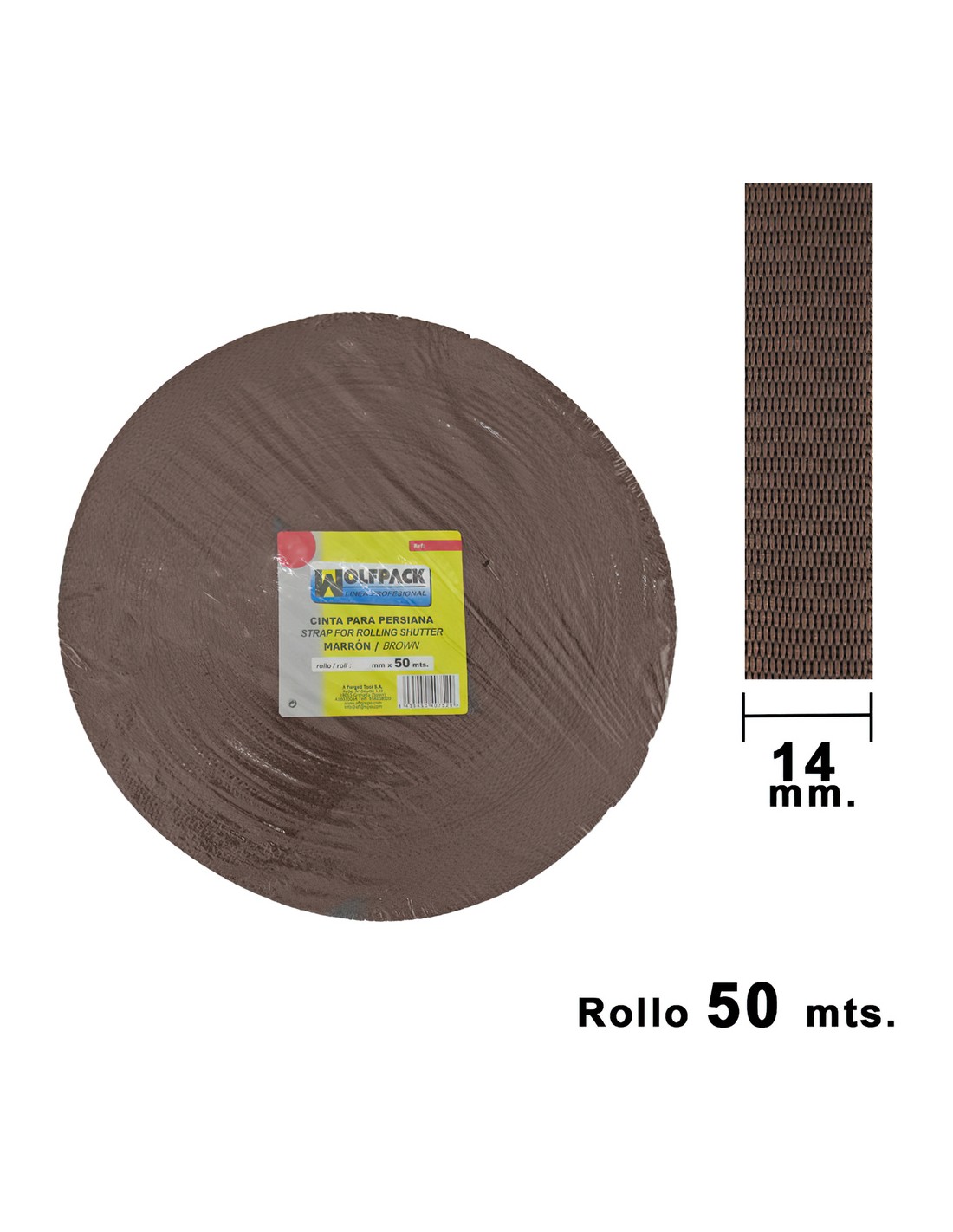 Cinta Persiana Wolfpack Marrón 14 mm. Rollo 50 Metros
