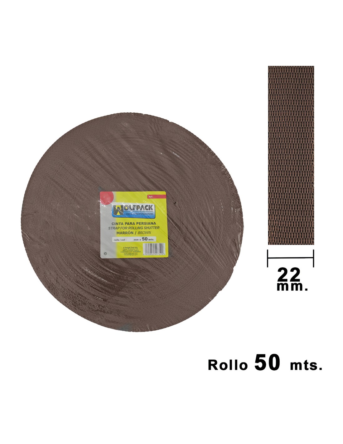 Cinta Persiana Wolfpack Marrón 22 mm. Rollo 50 Metros