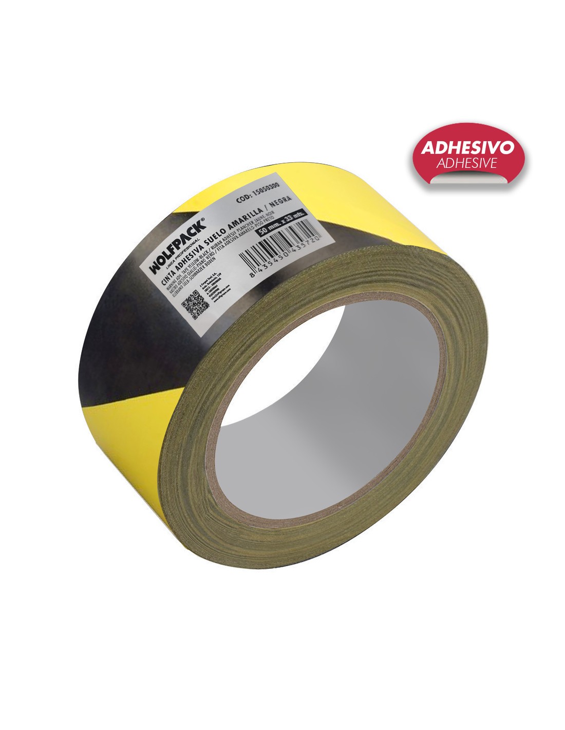 - Cinta de señalización adhesiva bicolor, amarilla y negra.