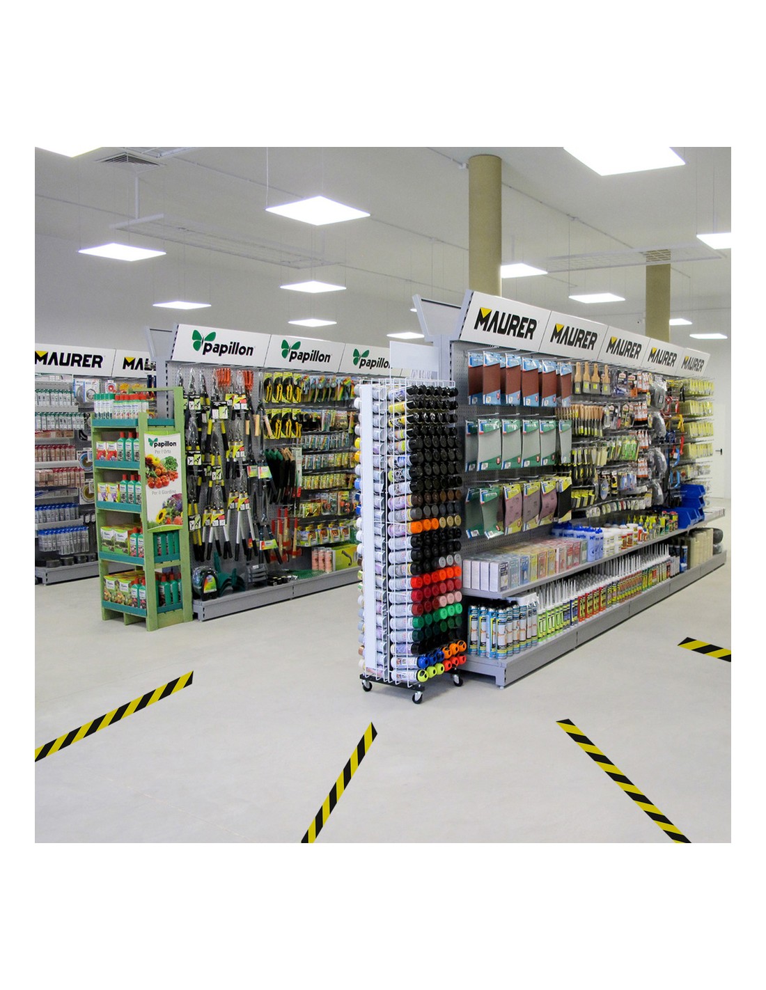 - Ideal para señalizar, aumentar la seguridad, delimitar zonas de trabajo, obstáculos, señalización de colas, distancias de seguridad, distancias entre personas, almacenes, colegios, talleres, restaurantes, comercios, zonas de tránsito, etc.