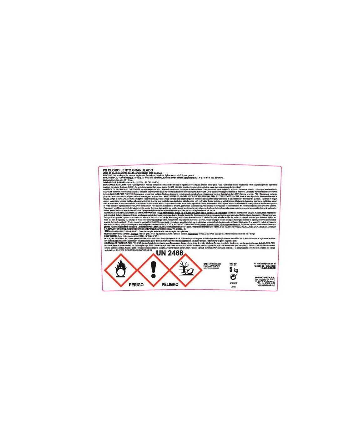 CLORO PS LENTO 5KGS. GRANULADO