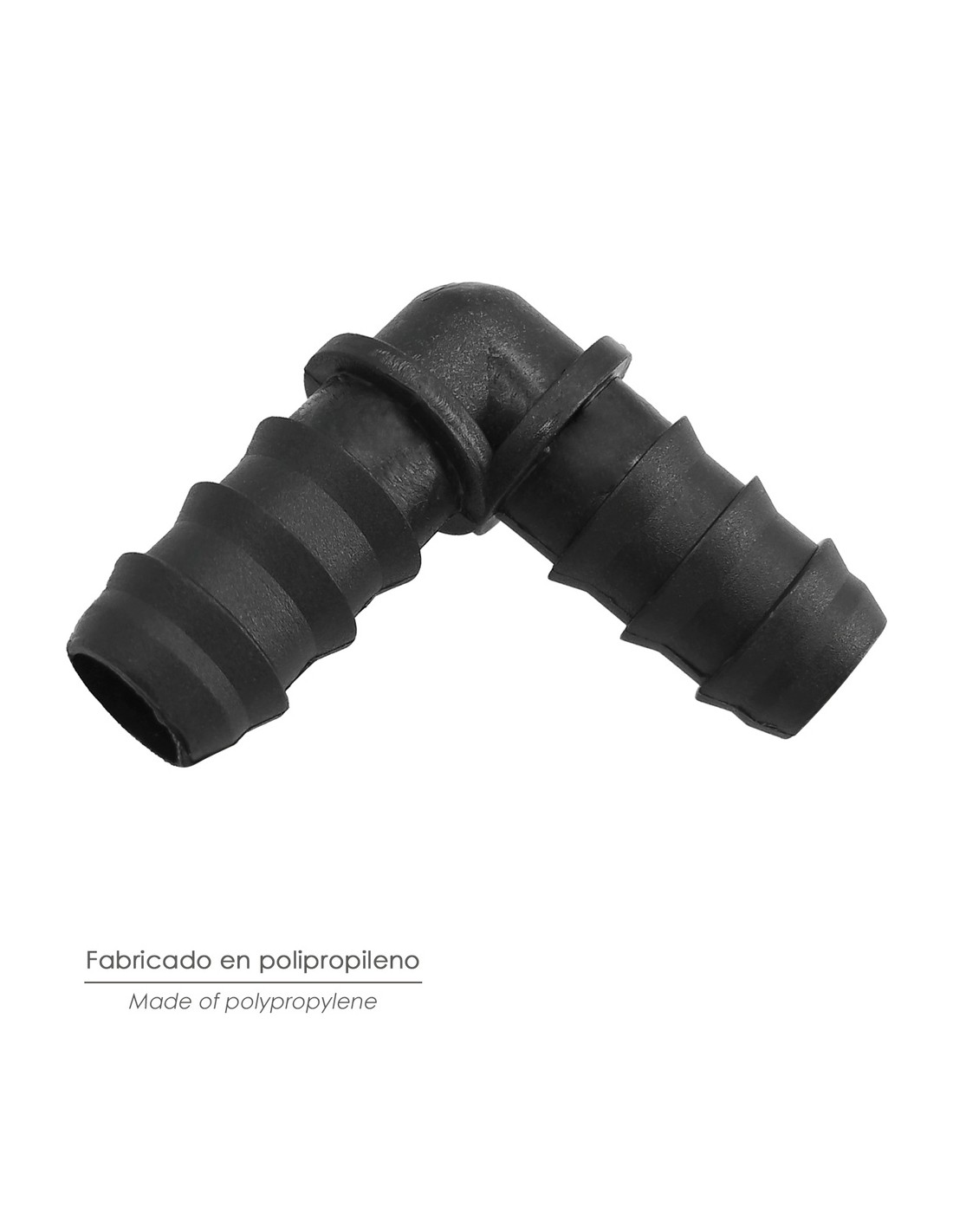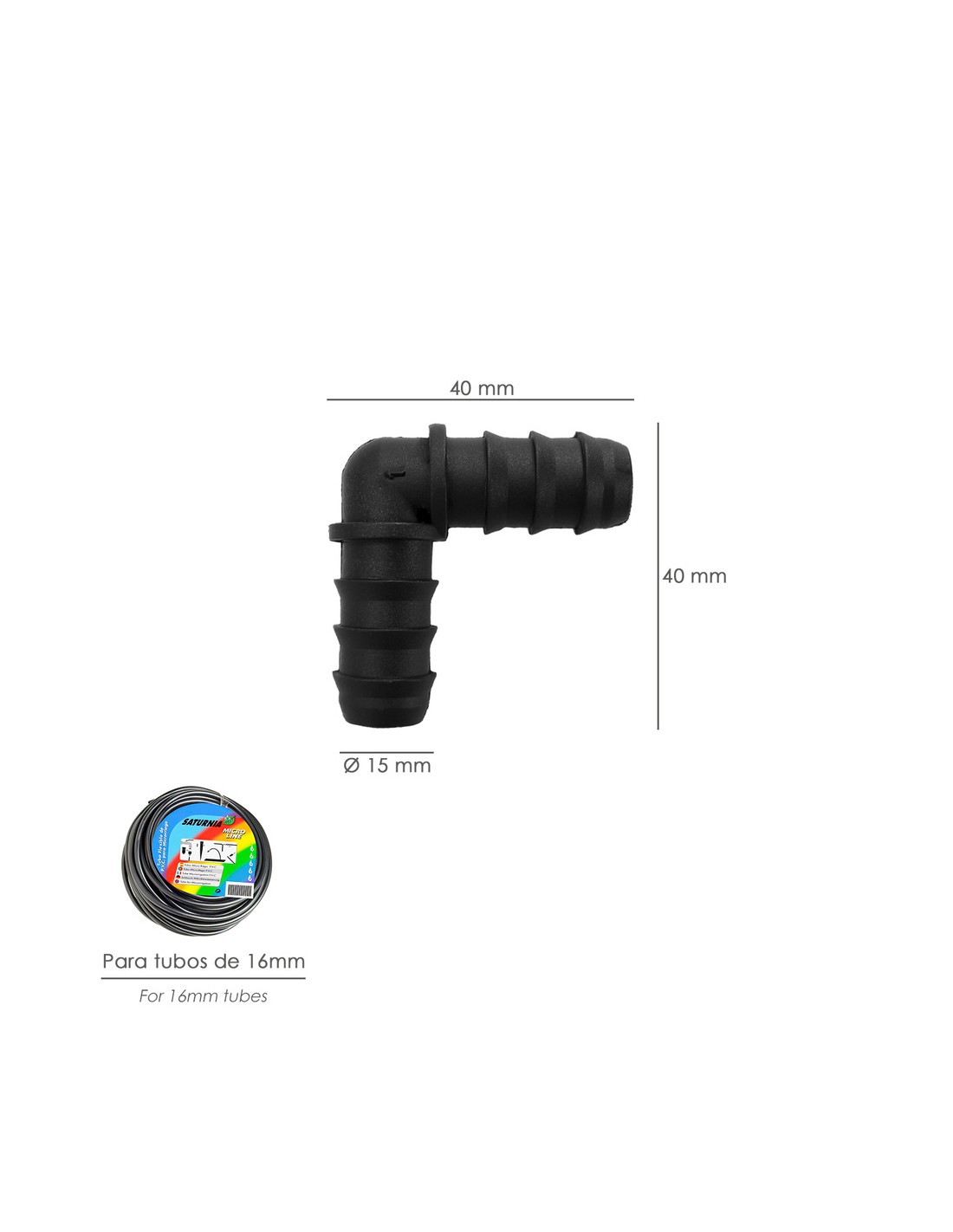 - Codo simple de riego empleado para la unión de tuberías de Ø 16 mm.