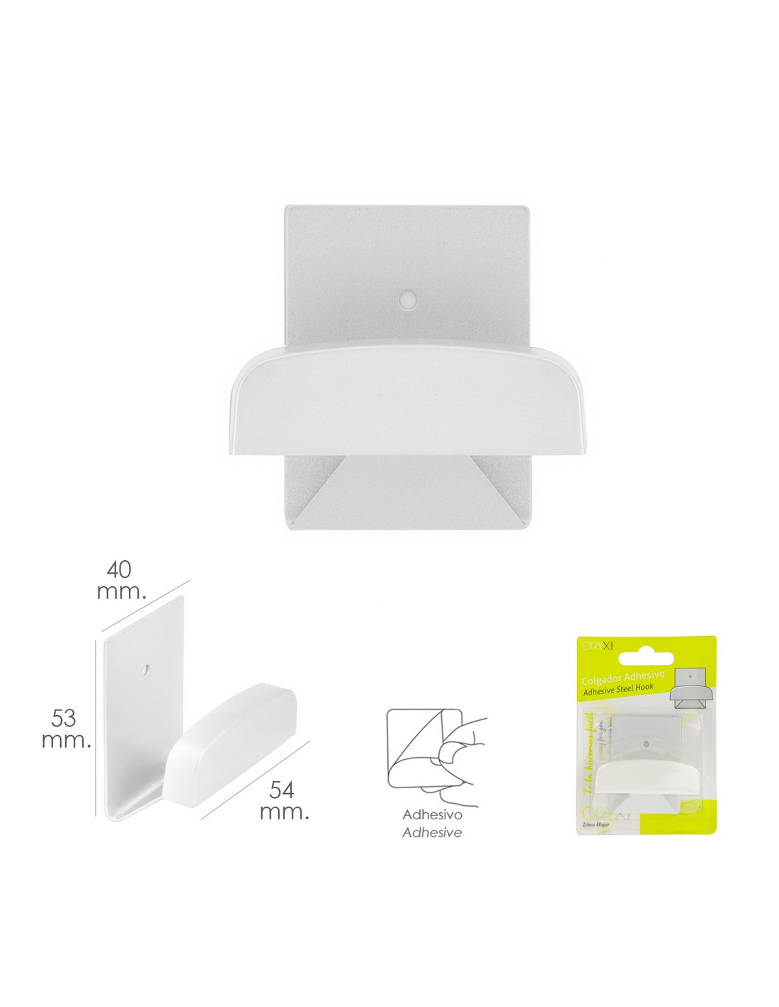 - Para su instalación limpie la zona donde vaya ser pegado, retire la el papel protector del ahesivo y apriete el colgador donde vaya a ser fijado.