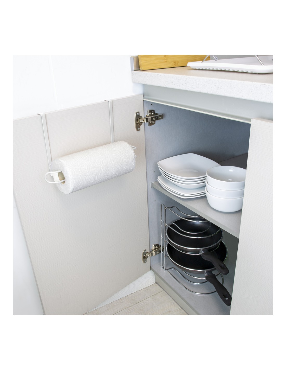 - Soporte colgante portarrollos para papel de cocina.