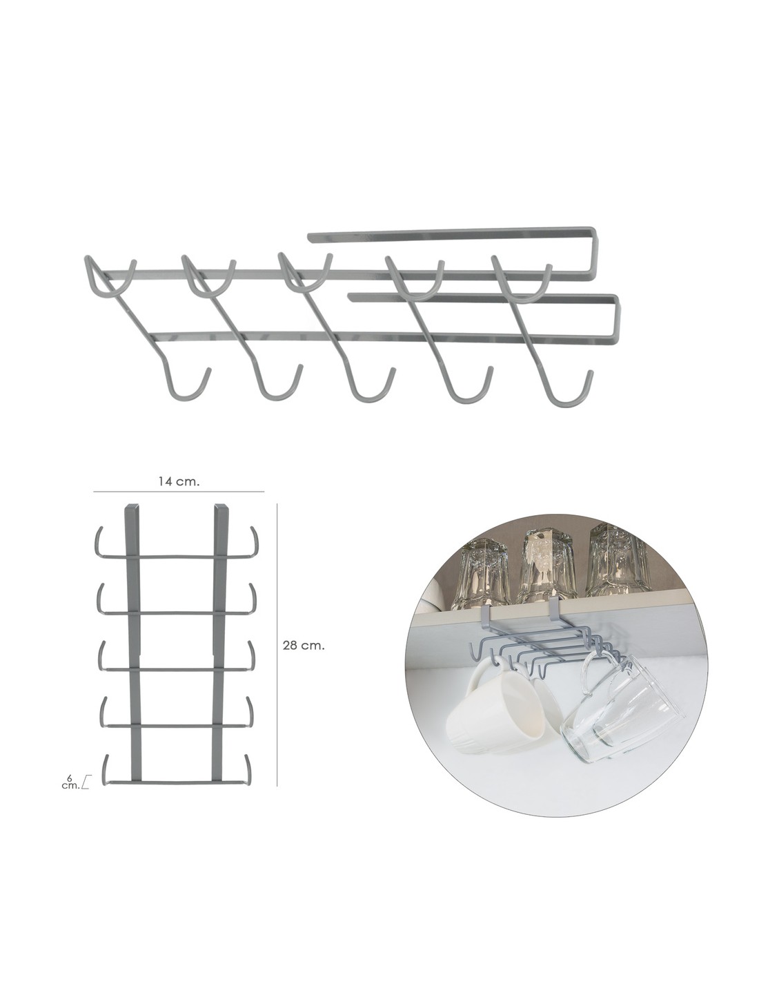 - Articulo también conocido como soporte tazas, guarda tazas, cuelga tazas, cuelga muebles, ganchos bajo mueble, etc