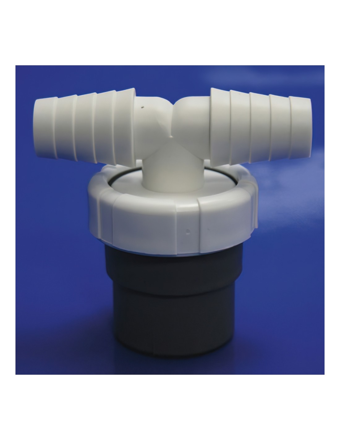 Conexion P.P. T-216 1 1/2 con toma lavadora. - Conexión con dos tomas de lavadora o lavavajillas. - Entrada: 20 mm. Diámetro. - Salida: 40 mm. Diámetro.