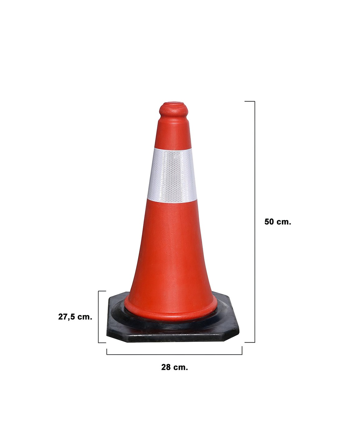 Cono Señalizacion Base Goma. - Medida: 50 cm. - Con banda reflectante. - Base goma para mayor estabilidad. - Articulo tambien conocido como cono obras, cono parking, cono carretera, cono seguridad.