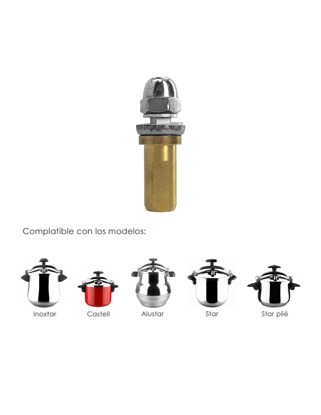 - Artículo también conocido como tornillo de seguridad, cono de olla, regulador de presión interna, valvula de seguridad, valvula de presion, chimenea de olla