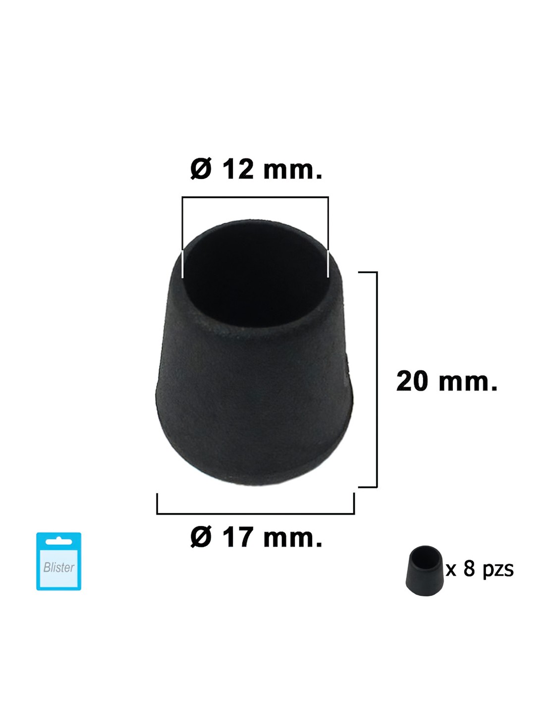 Contera Cónica Negra 12mm. Blister 8 piezas.