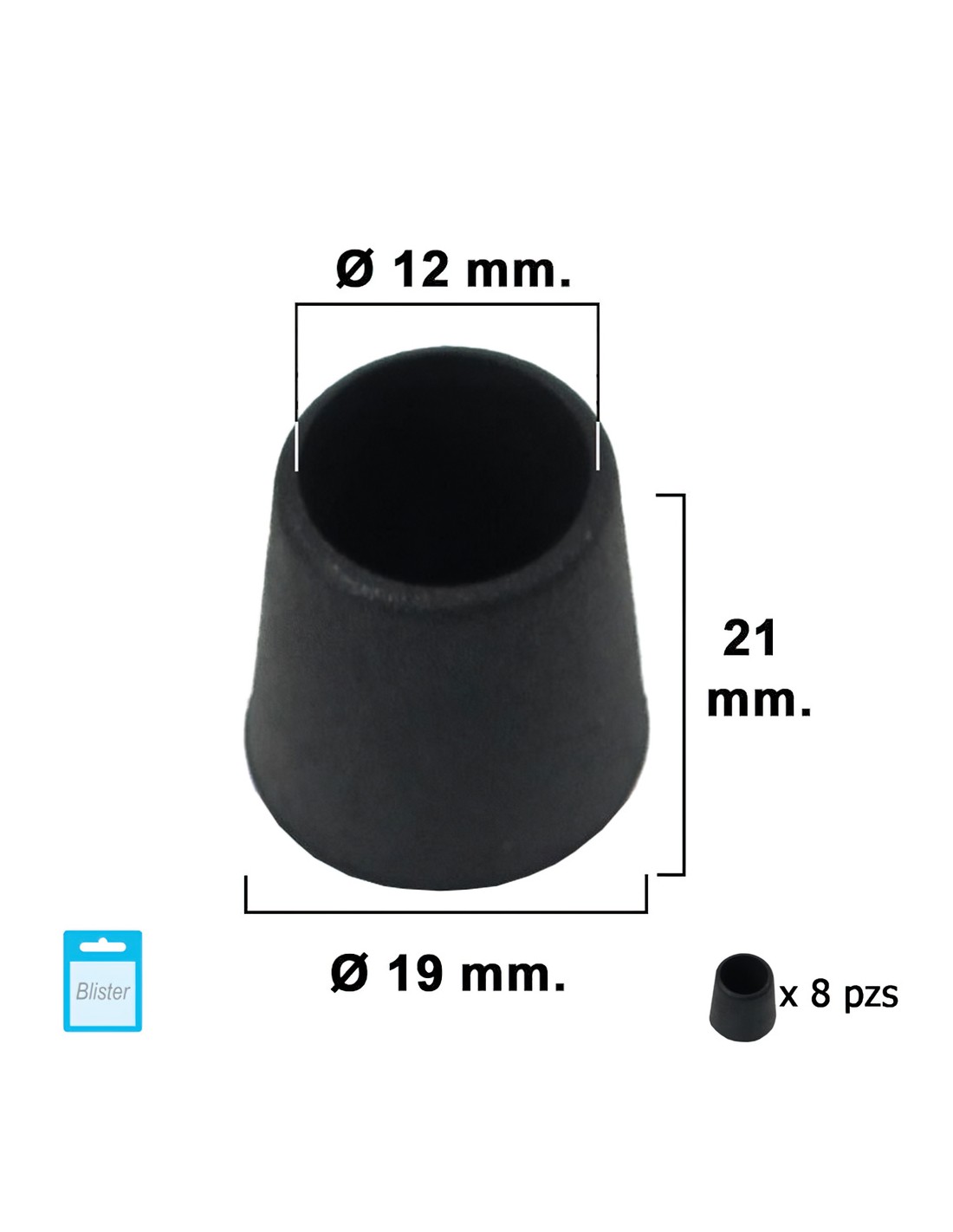 Contera Cónica Negra 14mm. Blister 8 piezas.