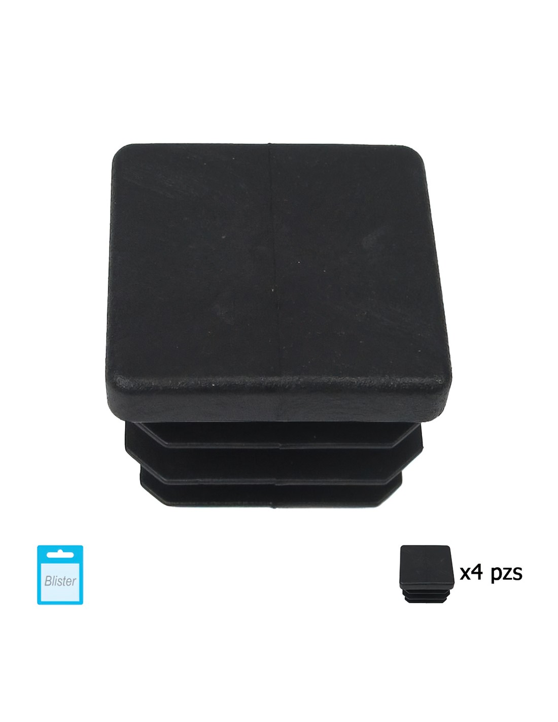 Contera Cuadrada Interior Negra 30x30 mm. Blister 4 piezas.