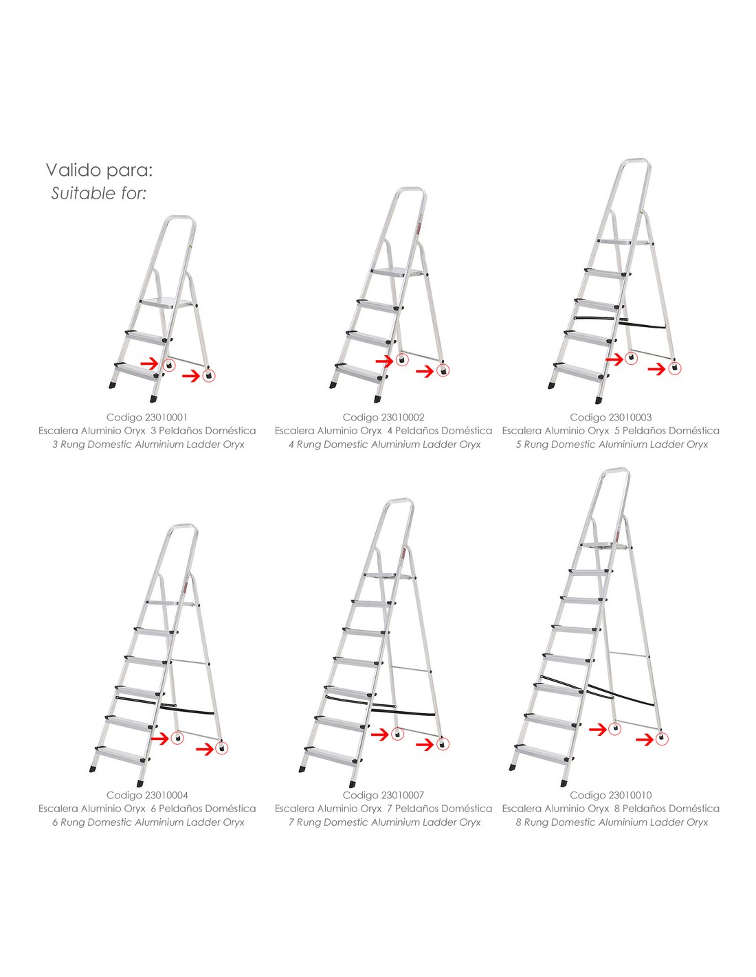 - Valido para escaleras Oryx de 3 a 8 peldaños: