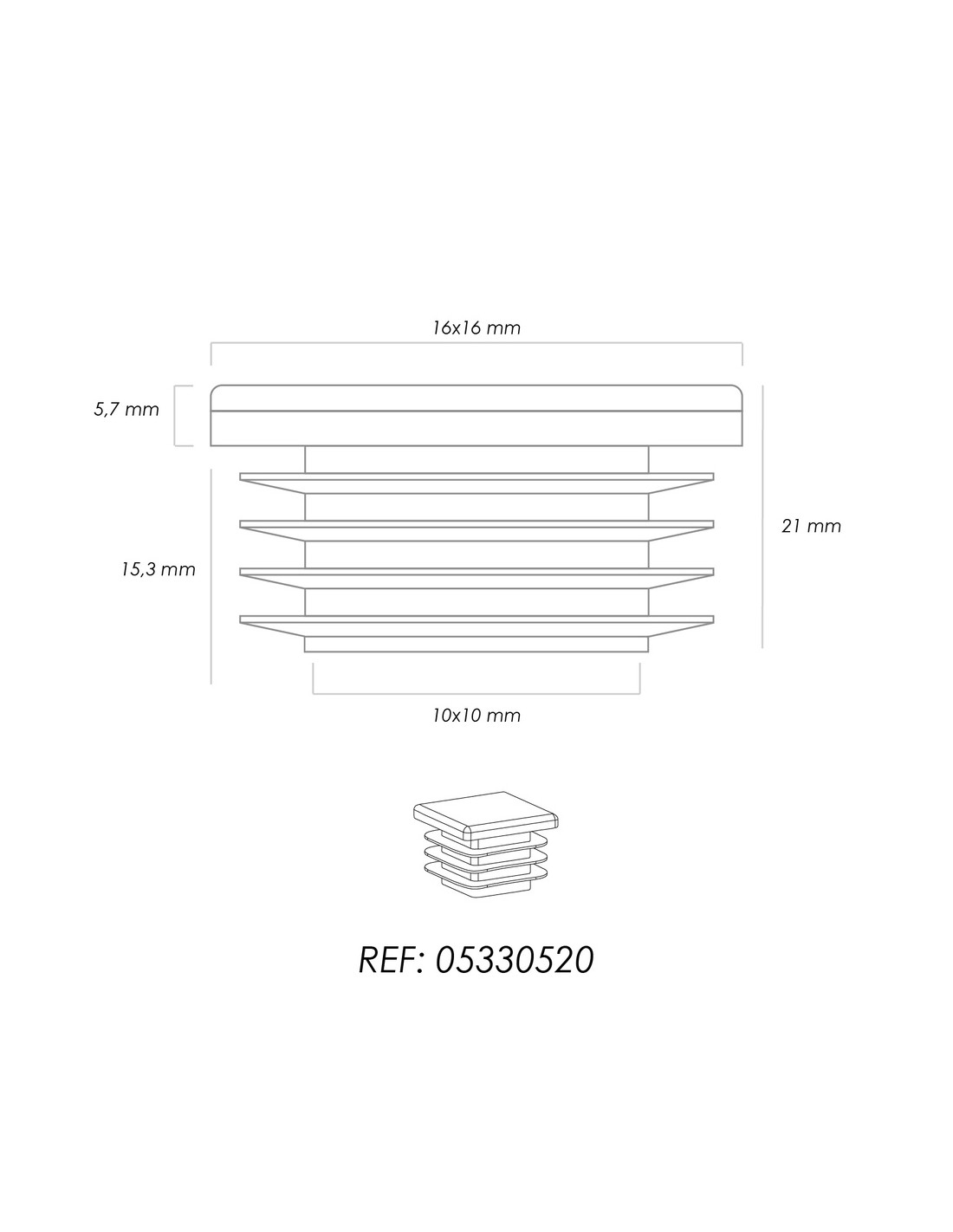 Contera Interior Plastico Cuadrada 16x16 mm. Color Negro. Bolsa 200 Unidades. Contera Mesa, Silla, Muebles, Estanteria