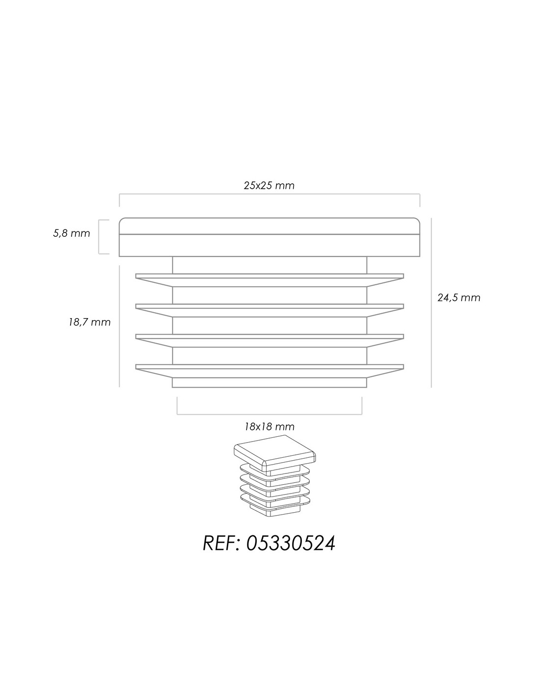 Contera Interior Plastico Cuadrada 25x25 mm. Color Negro. Bolsa 200 Unidades. Contera Mesa, Silla, Muebles, Estanteria