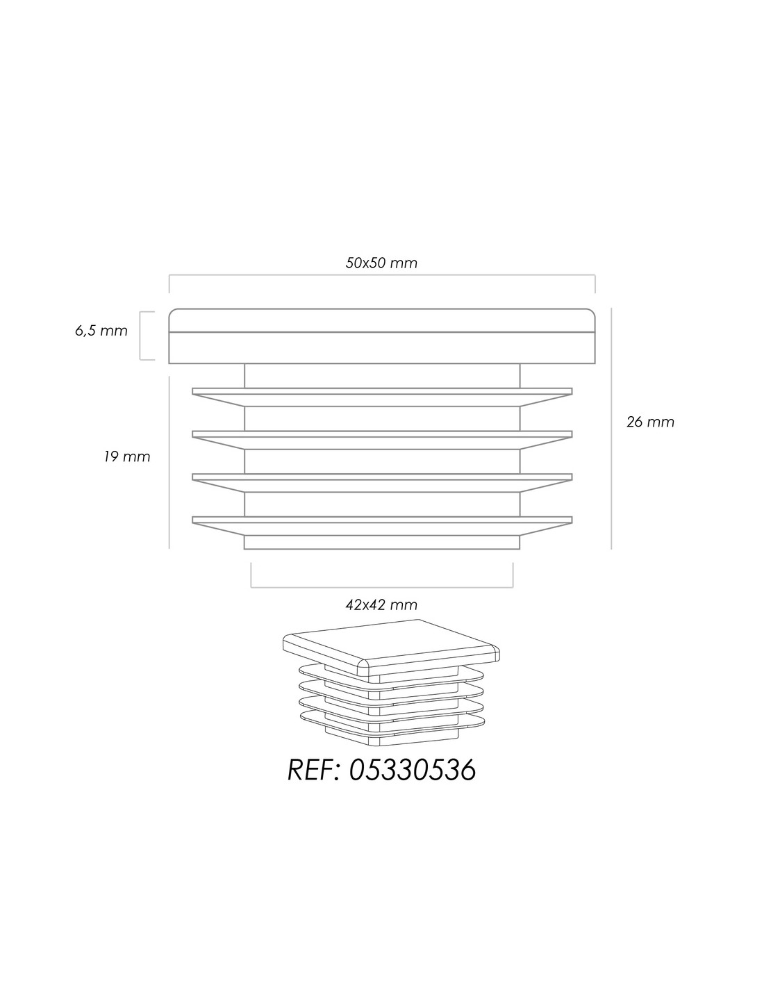 Contera Interior Plastico Cuadrada 50x50 mm. Color Negro. Bolsa 100 Unidades. Contera Mesa, Silla, Muebles, Estanteria