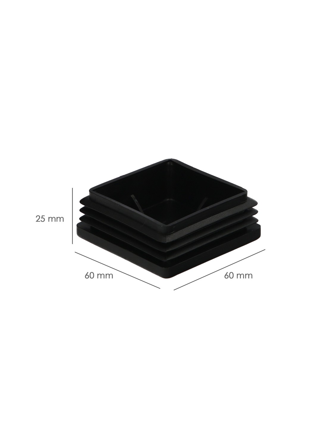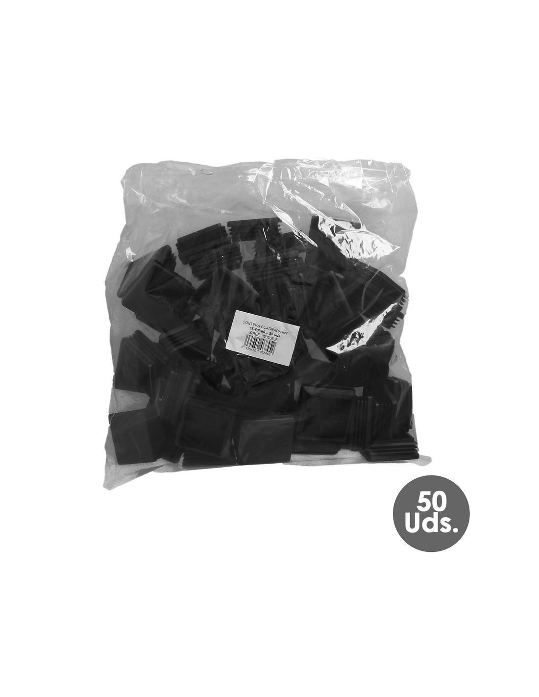 Contera Interior Plastico Cuadrada 60x60 mm. Color Negro. Bolsa 50 Unidades. Contera Mesa, Silla, Muebles, Estanteria
