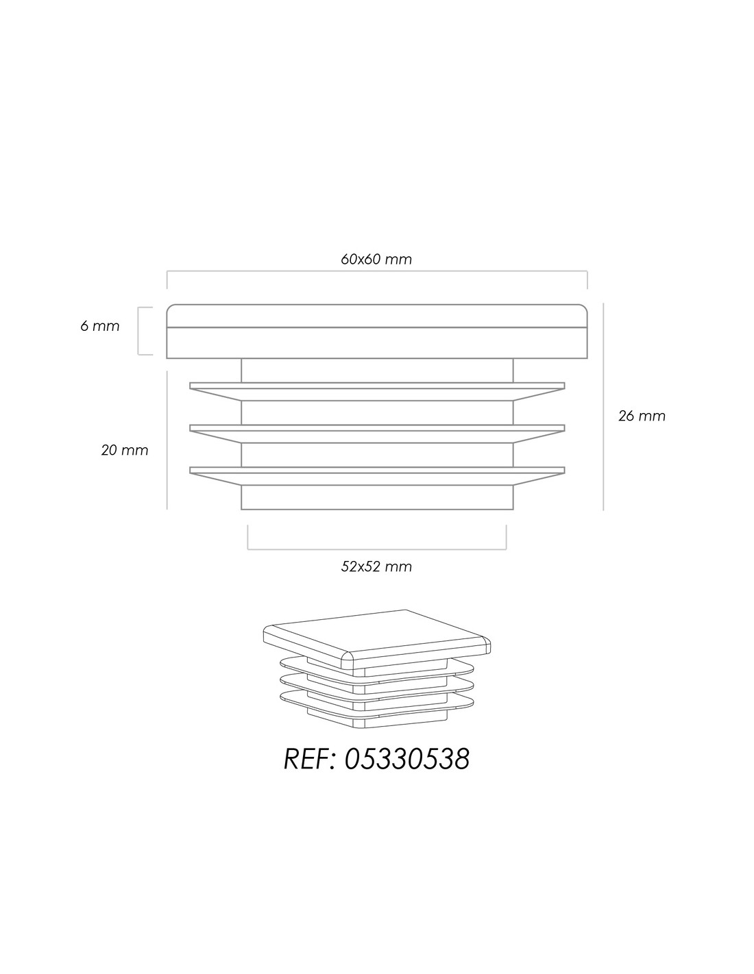 - Medida exterior: 60x60 mm.