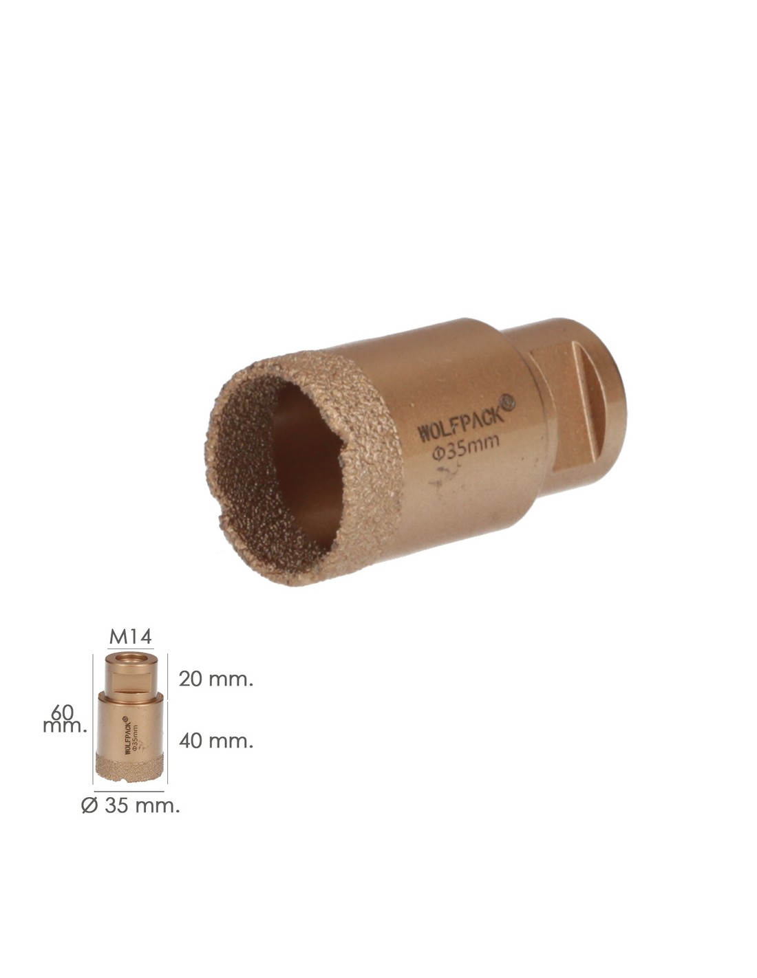 Corona Diamante Para Amoladora Ø 35 mm. Conexión Rosca M14. Corte Seco