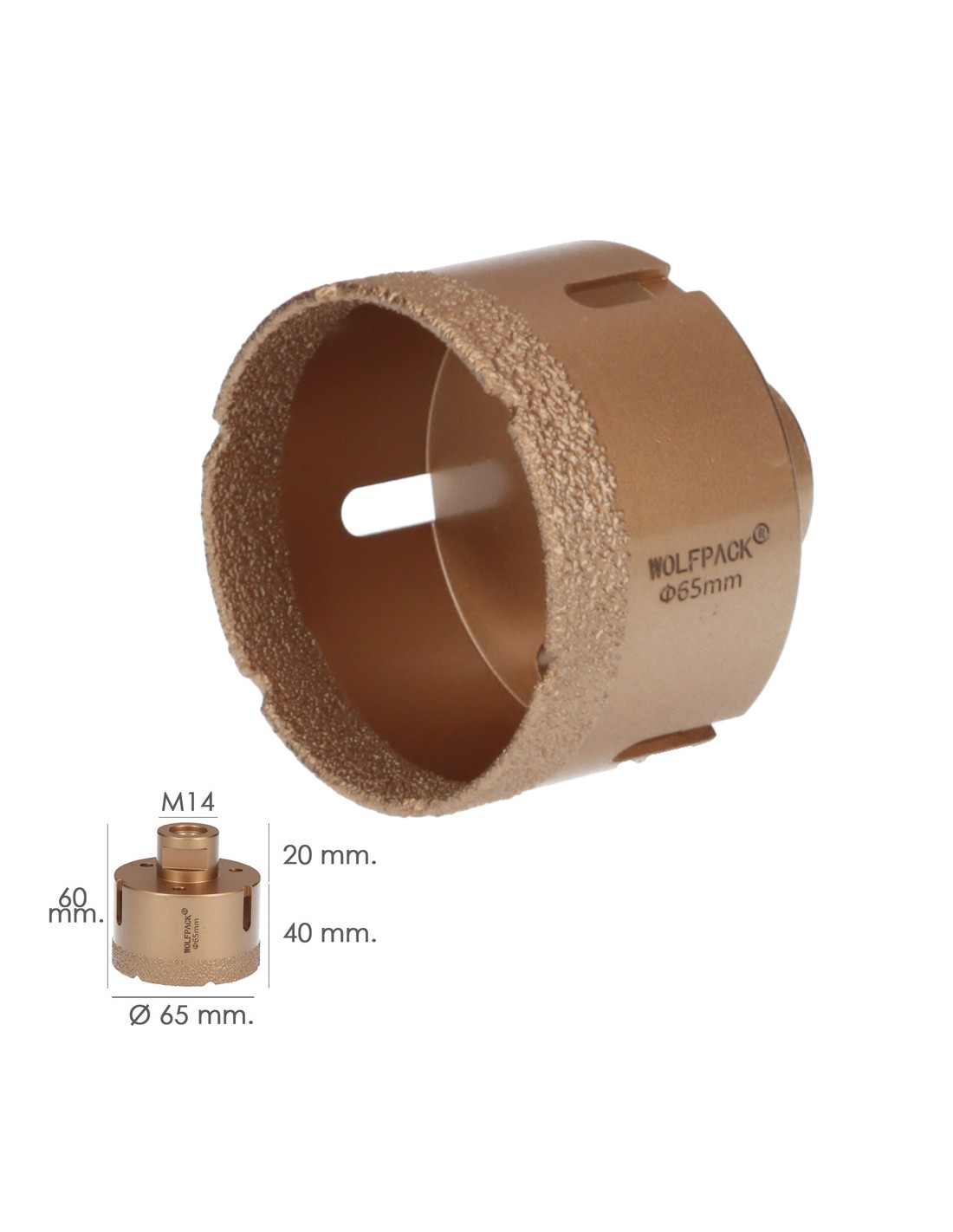 Corona Diamante Para Amoladora Ø 65 mm. Conexión Rosca M14. Corte Seco