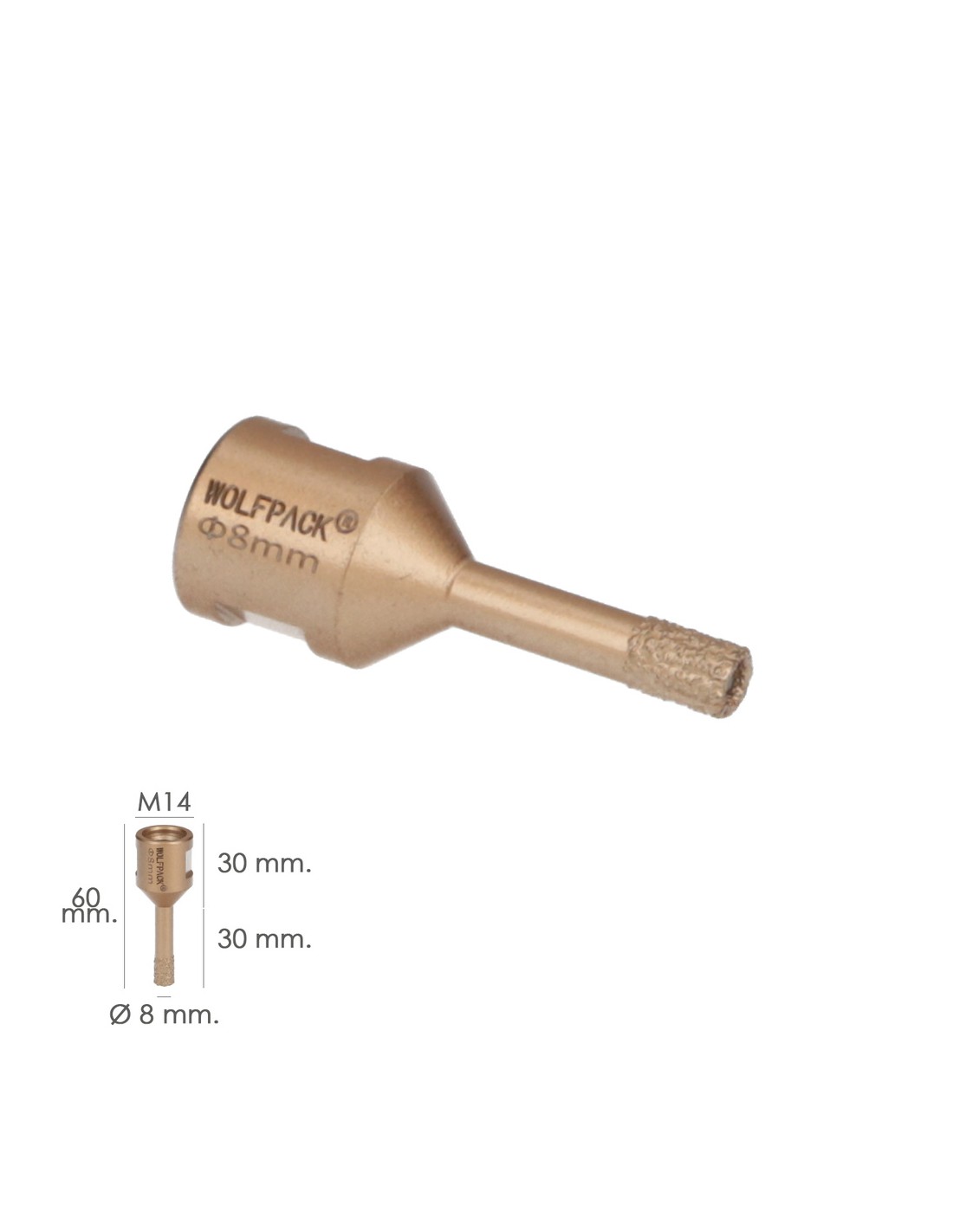 Corona Diamante Para Amoladora Ø 8 mm. Conexión Rosca M14. Corte Seco