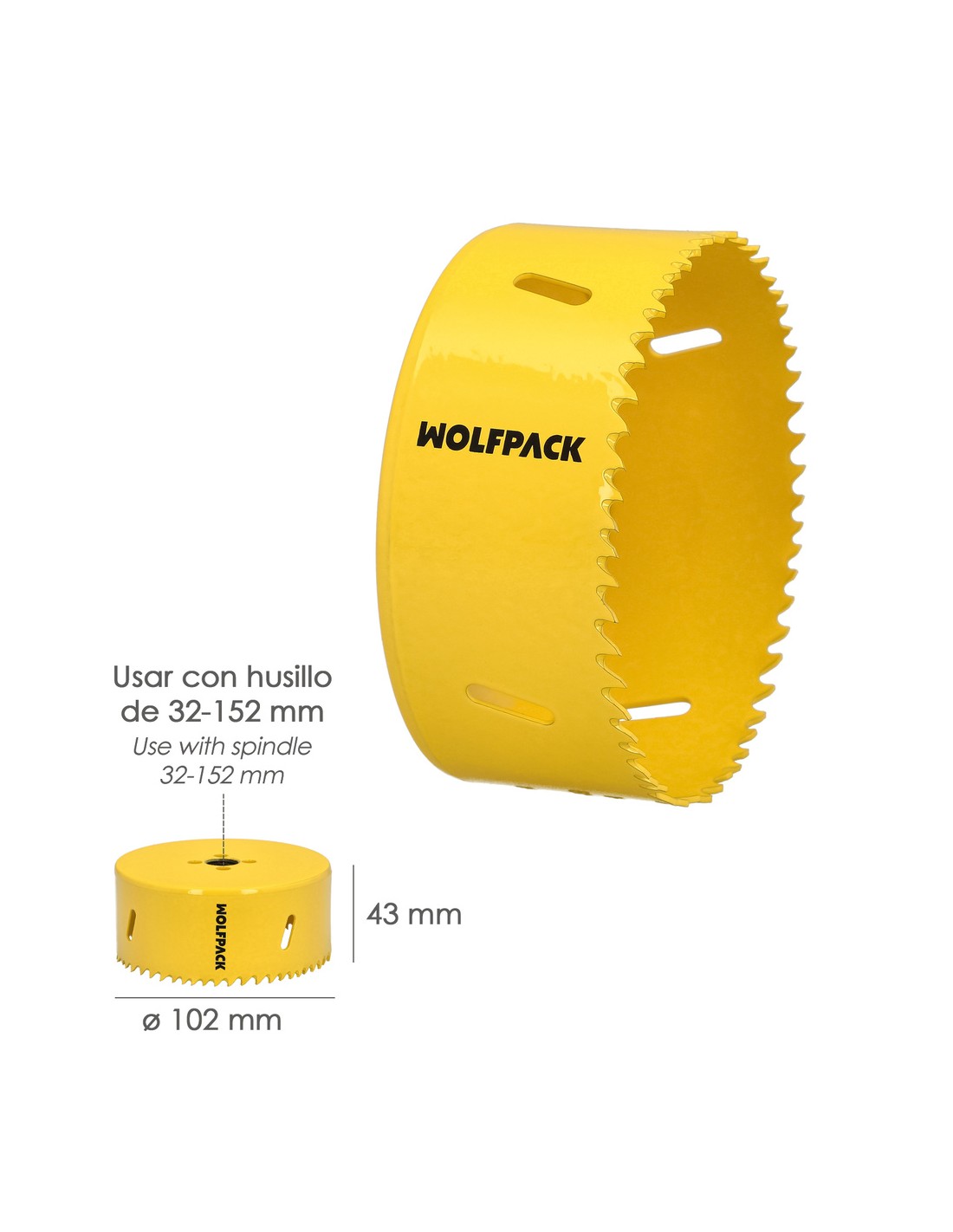 Corona Sierra Bimetal Ø 102 mm. Templado Termico, Base Reforzada. Corona Madera, Broca Agujeros Madera, Acero, Hierro, Plasticos