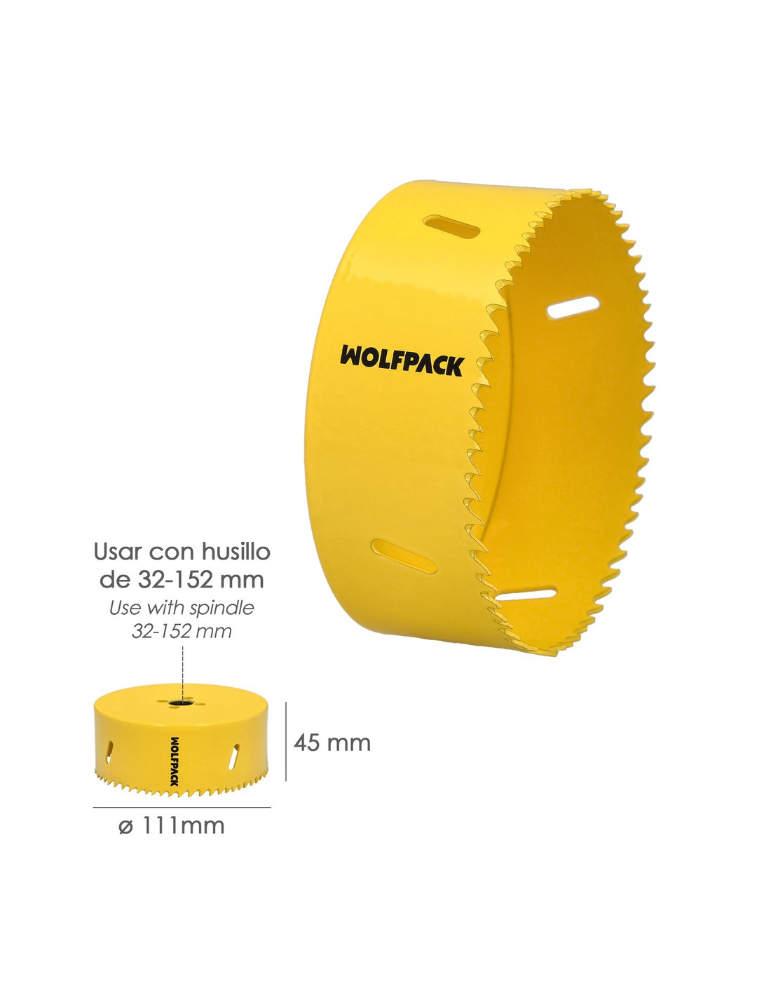 Corona Sierra Bimetal Ø 111 mm. Templado Termico, Base Reforzada. Corona Madera, Broca Agujeros Madera, Acero, Hierro, Plasticos