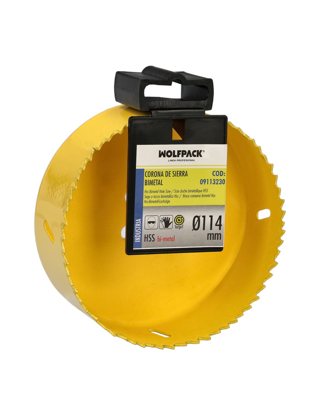 Corona Sierra Bimetal Ø 114 mm. Templado Termico, Base Reforzada. Corona Madera, Broca Agujeros Madera, Acero, Hierro, Plasticos