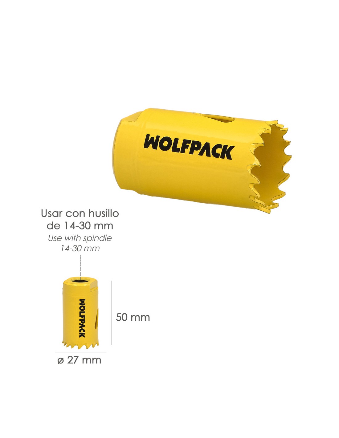 Corona Sierra Bimetal Ø 27 mm. Templado Termico, Base Reforzada. Corona Madera, Broca Agujeros Madera, Acero, Hierro, Plasticos