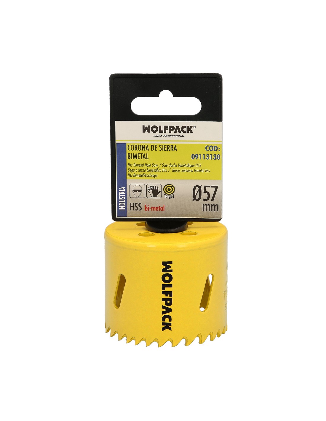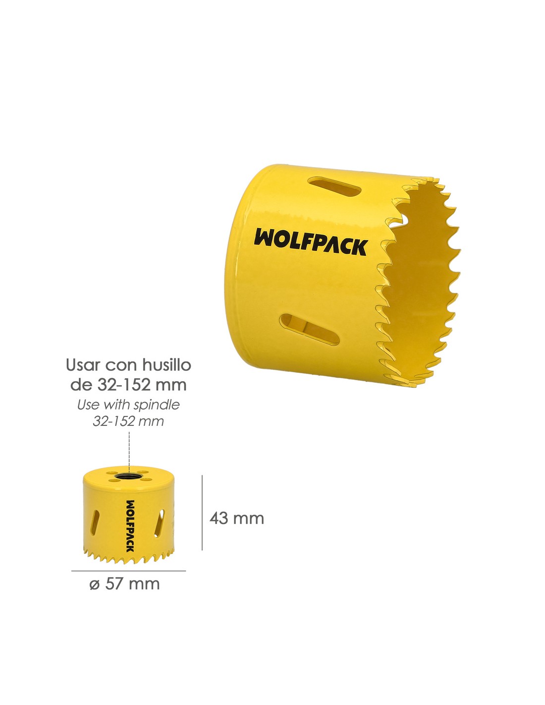 Corona Sierra Bimetal Ø 57 mm. Templado Termico, Base Reforzada. Corona Madera, Broca Agujeros Madera, Acero, Hierro, Plasticos