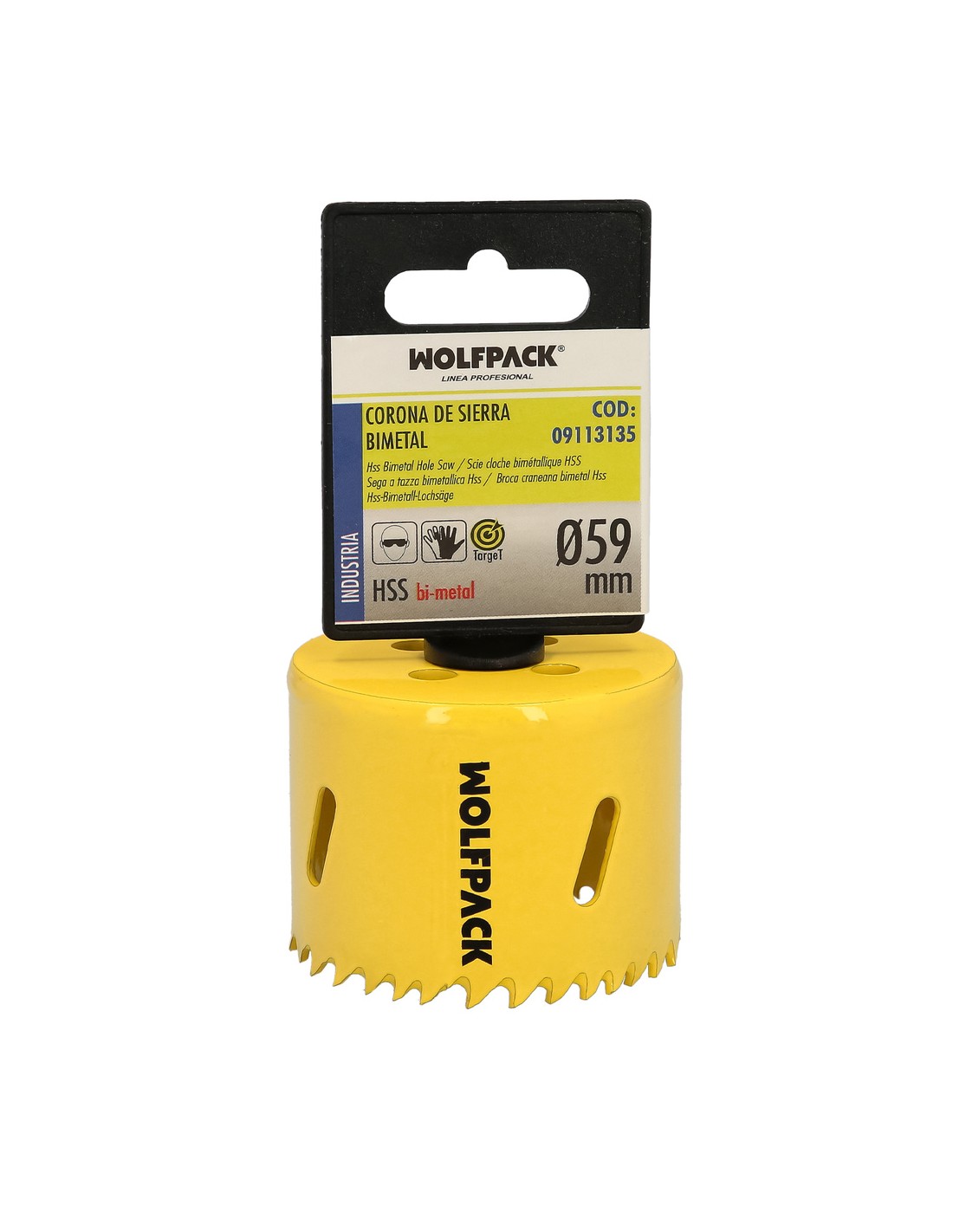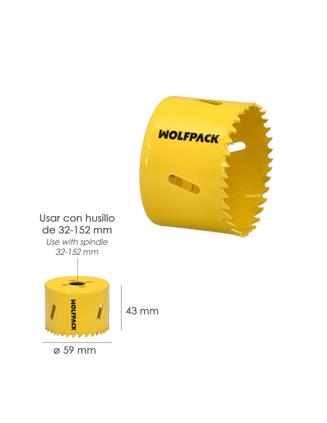 Corona Sierra Bimetal Ø 59 mm. Templado Termico, Base Reforzada. Corona Madera, Broca Agujeros Madera, Acero, Hierro, Plasticos