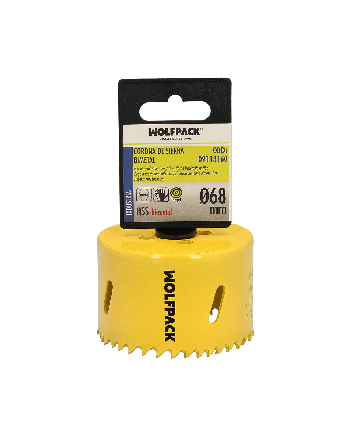 Corona Sierra Bimetal Ø 68 mm. Templado Termico, Base Reforzada. Corona Madera, Broca Agujeros Madera, Acero, Hierro, Plasticos