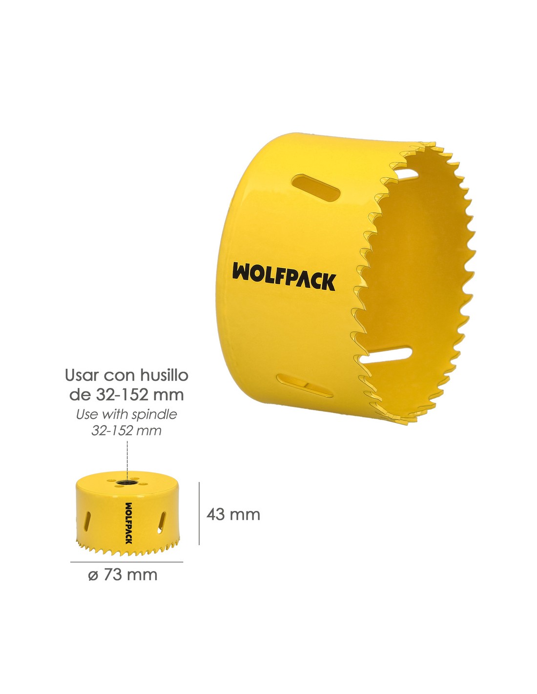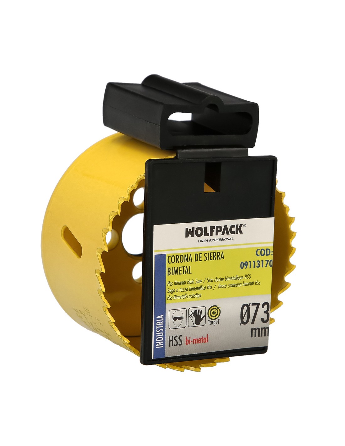 Corona Sierra Bimetal Ø 73 mm. Templado Termico, Base Reforzada. Corona Madera, Broca Agujeros Madera, Acero, Hierro, Plasticos