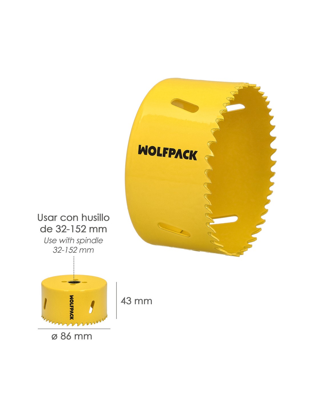 Corona Sierra Bimetal Ø 86 mm. Templado Termico, Base Reforzada. Corona Madera, Broca Agujeros Madera, Acero, Hierro, Plasticos