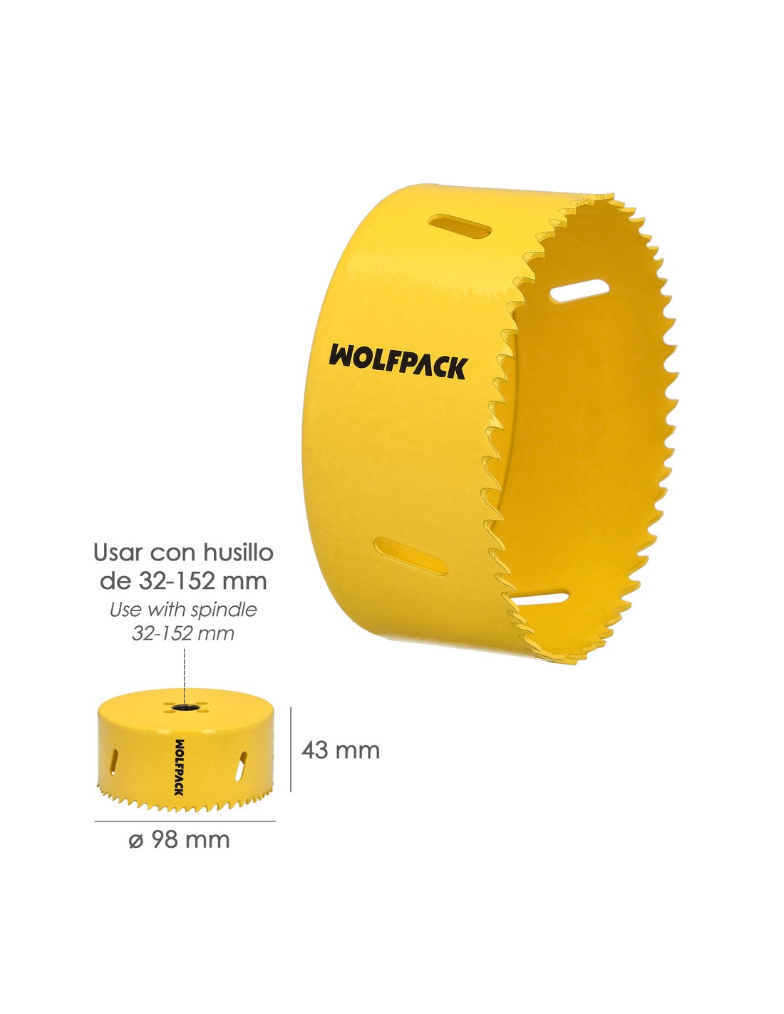Corona Sierra Bimetal Ø 98 mm. Templado Termico, Base Reforzada. Corona Madera, Broca Agujeros Madera, Acero, Hierro, Plasticos