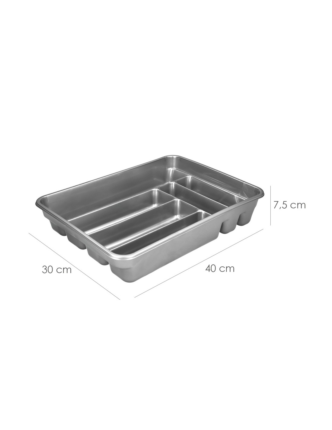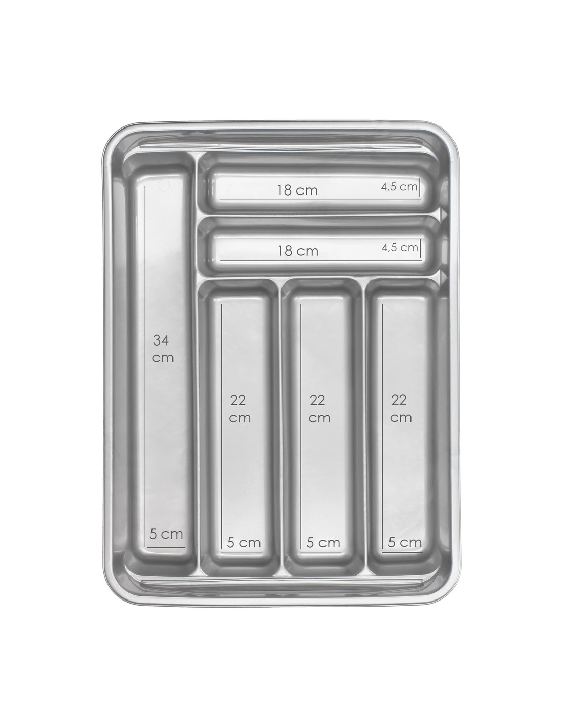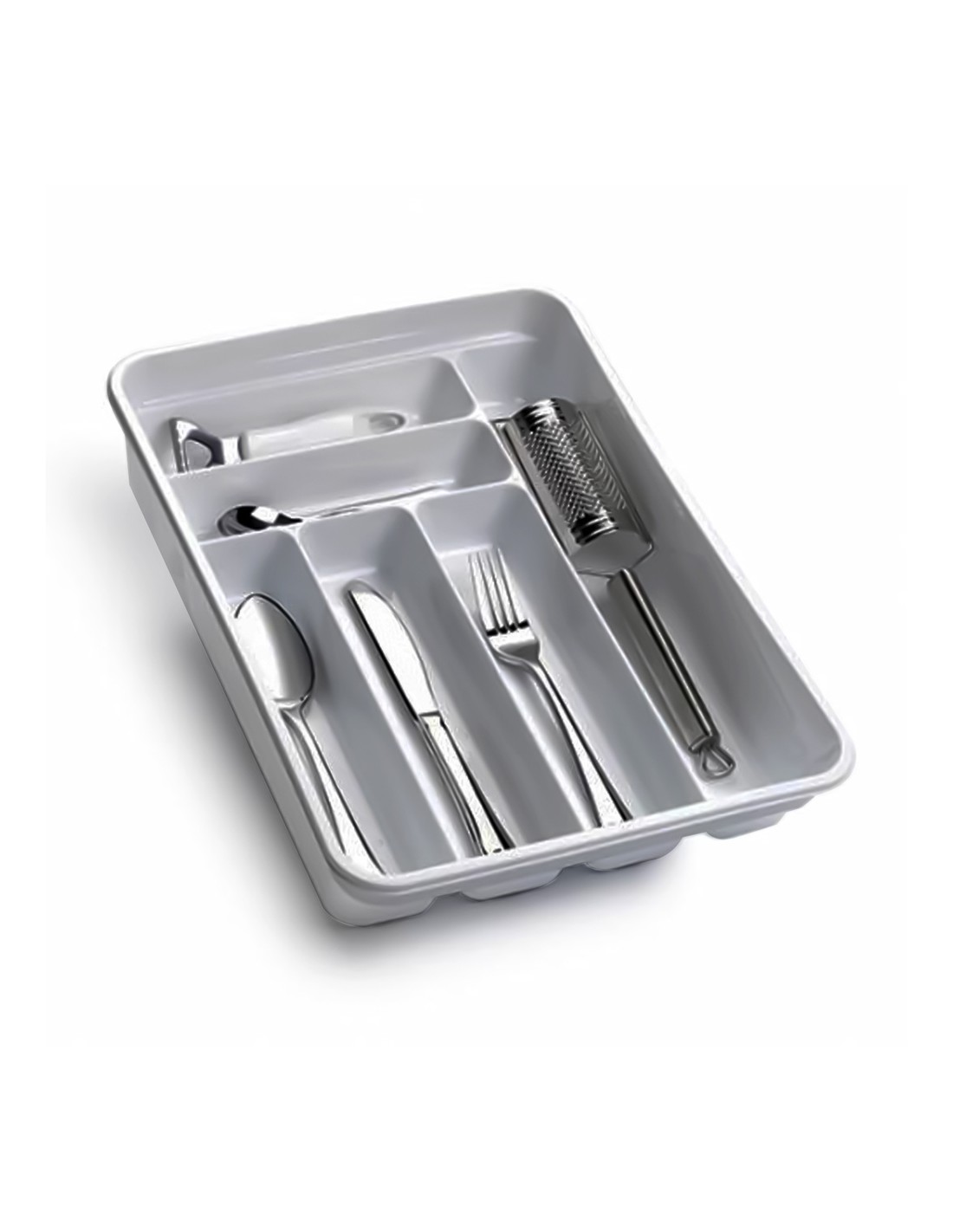 Cubertero Plastico Color Plata Oryx - Medida: 40x30x7 cm. - Cuenta con 6 compartimentos de diferentes medidas. - Realizado en plastico. - Acabado gris plateado. - Ideal para el almacenamiento de cubiertos.