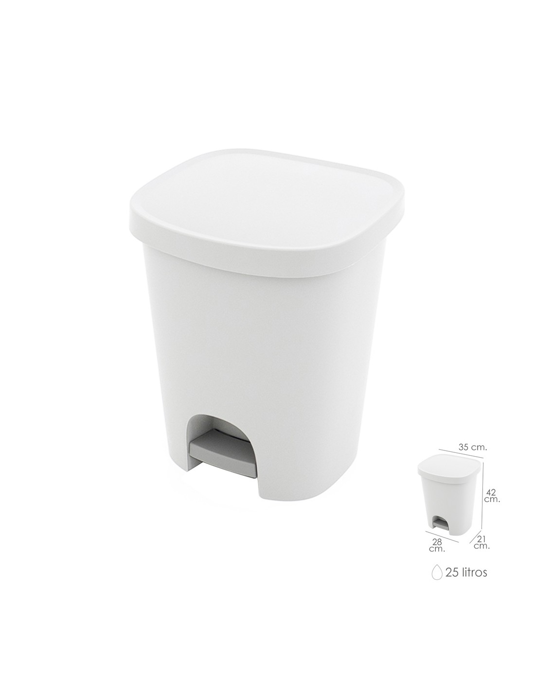 Cubo Basura Con Pedal 25 Litros Plastico Blanco