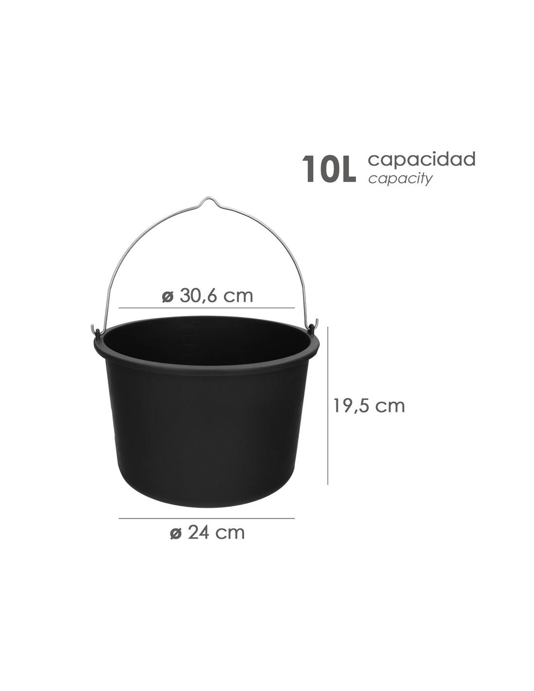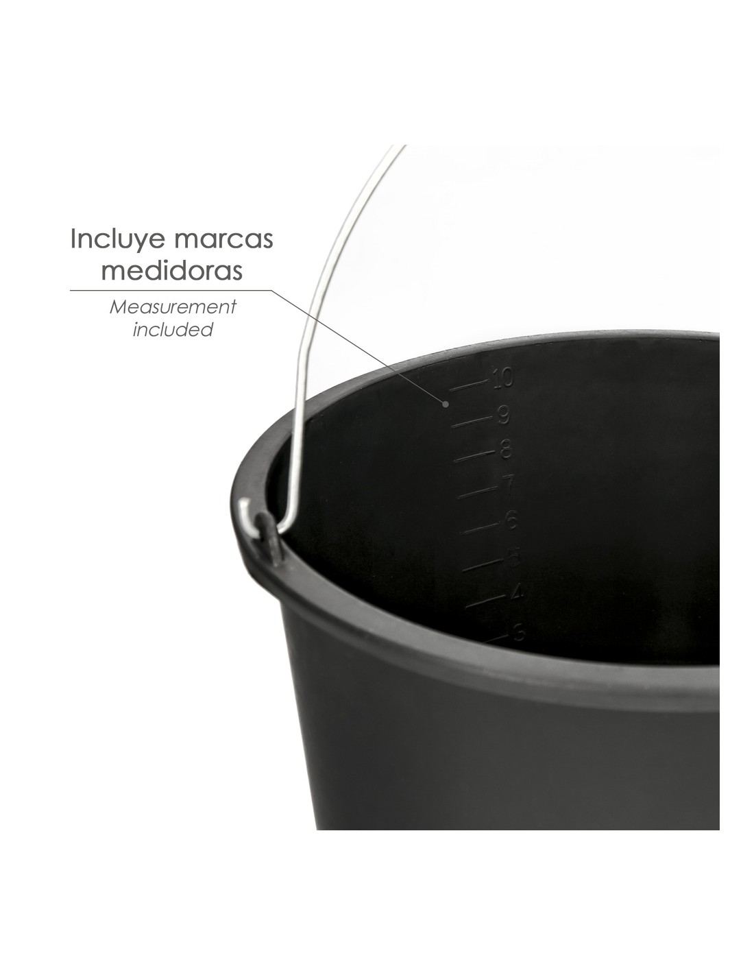 Cubo Obra Italiano Capacidad 10 Litros, Con Marcas Medidoras, Asa Acero Galvanizado, Resistente y Ligero.
