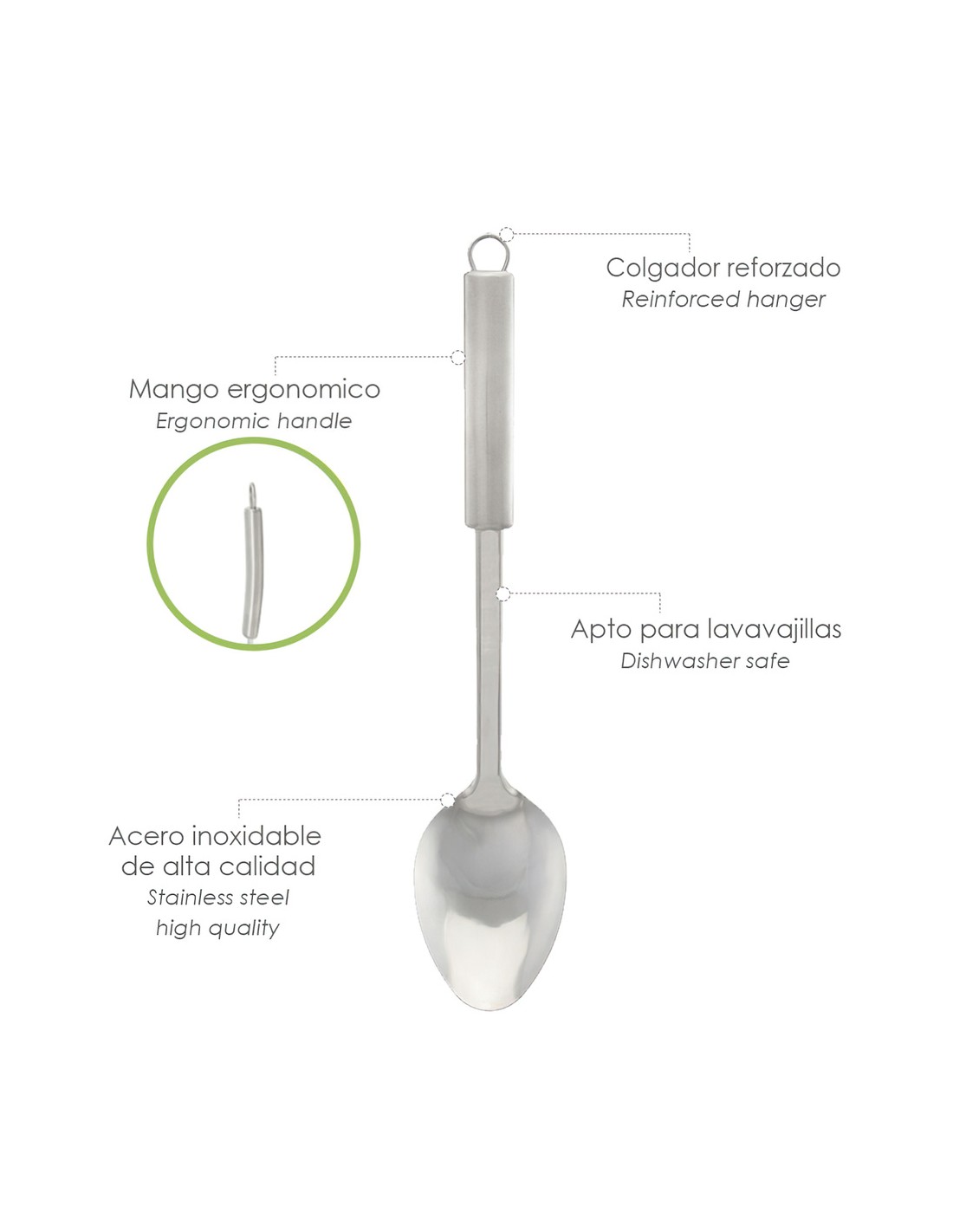 - Realizado en acero inoxidable de alta calidad, apto para su lavado en el lavavajillas.