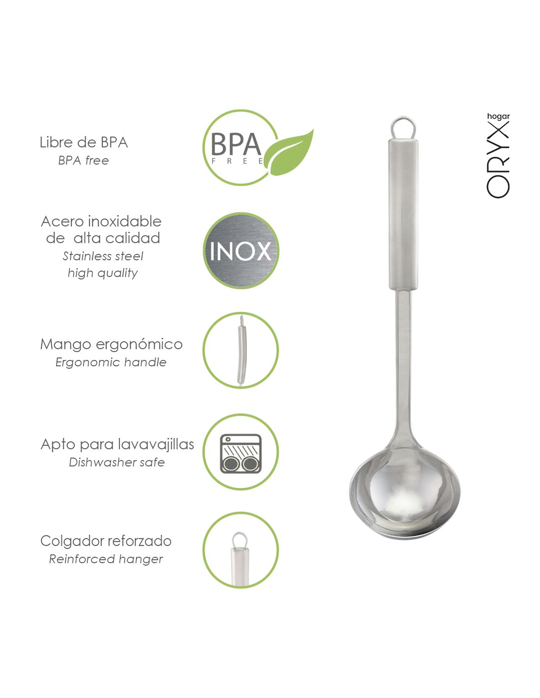 - Descubra toda la gama de utensilios de acero inoxidable: cuchara servir, cucharon servir, espumadera, rasera, varillas de batir, cuchara para helados, espatula para tartas, varilla batidora, todos ellos realizado en acero inoxidable.