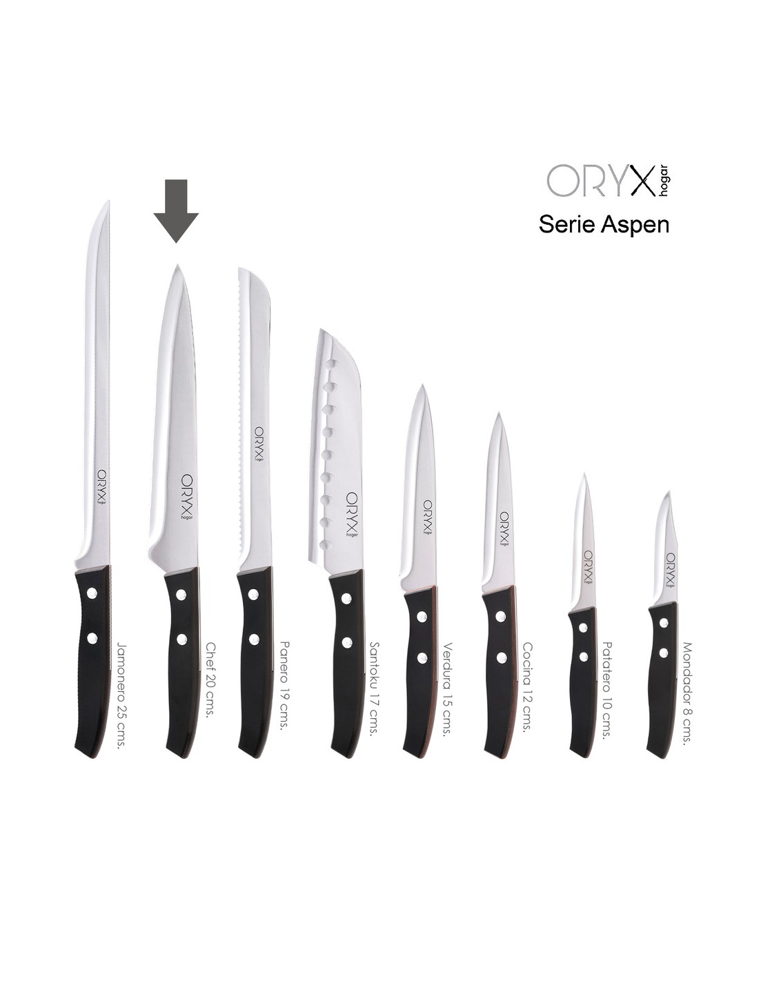 - La serie Aspen destaca por el equilibrio de sus cuchillos teniendo el centro de gravedad idoneo, usando estos cuchillos te sentiras comodo para realizar los mejores cortes.