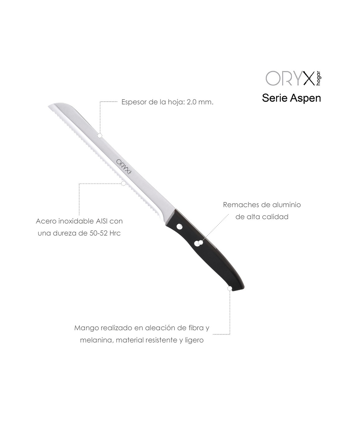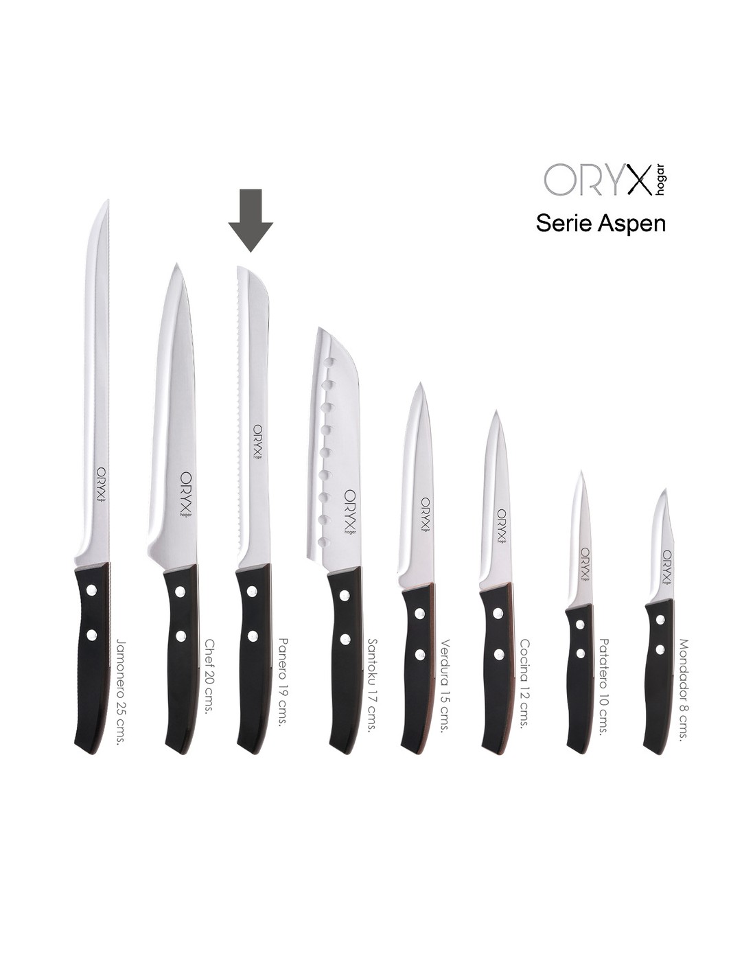 Cuchillo Aspen Panero Hoja Acero Inoxidable 19 cm. Negro