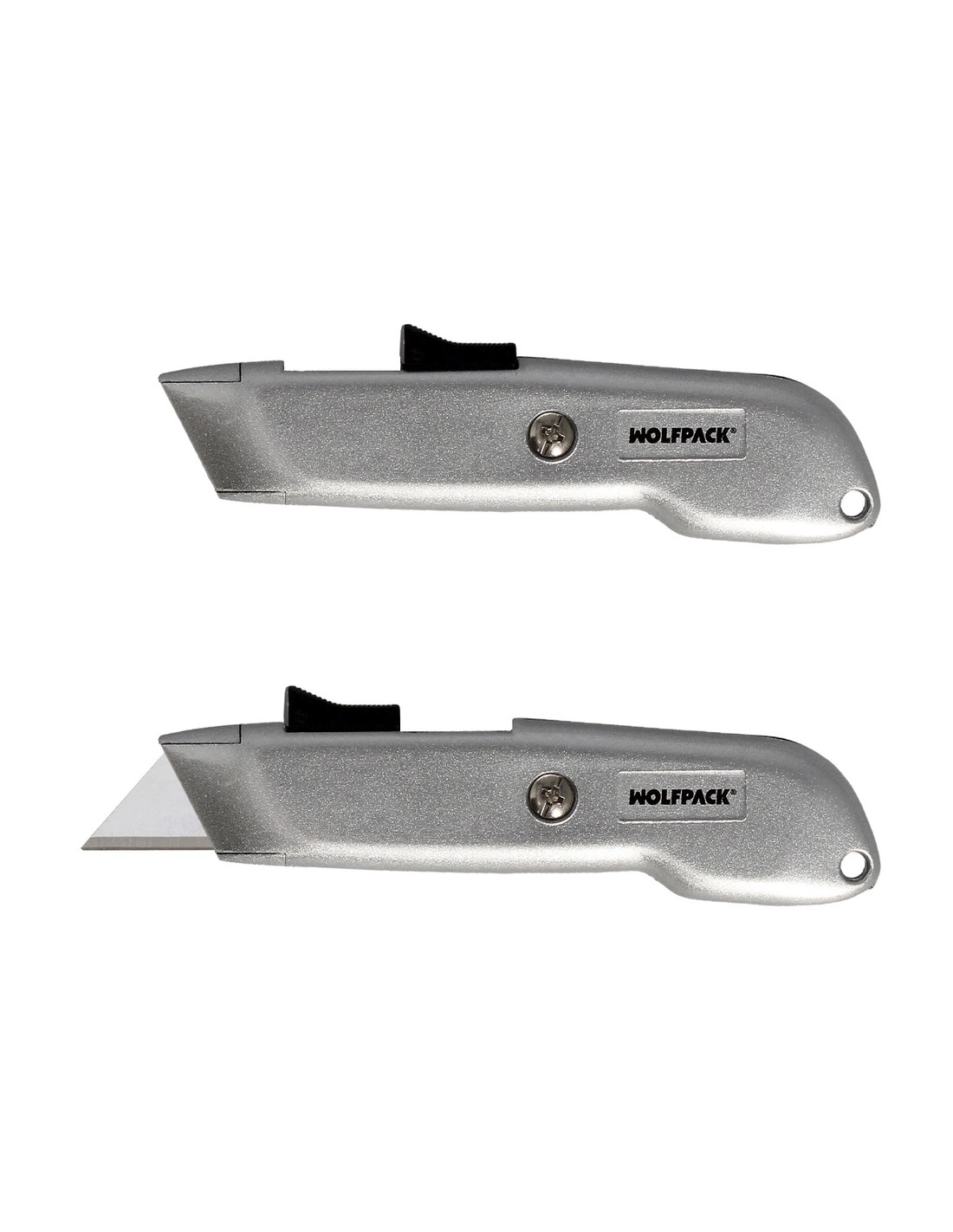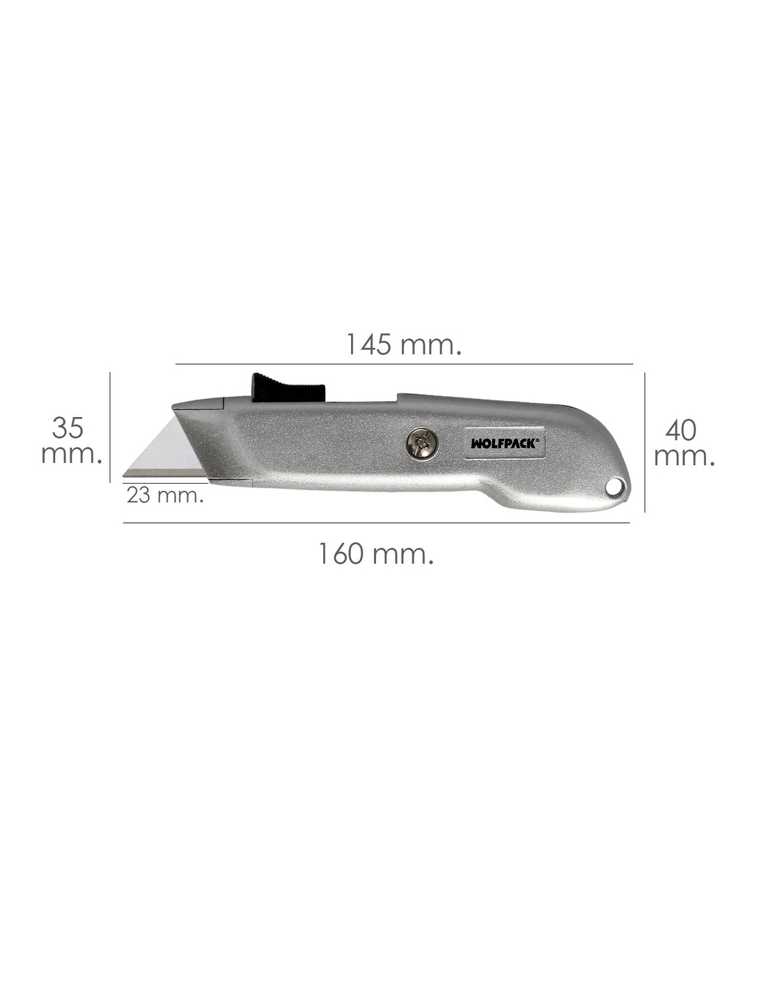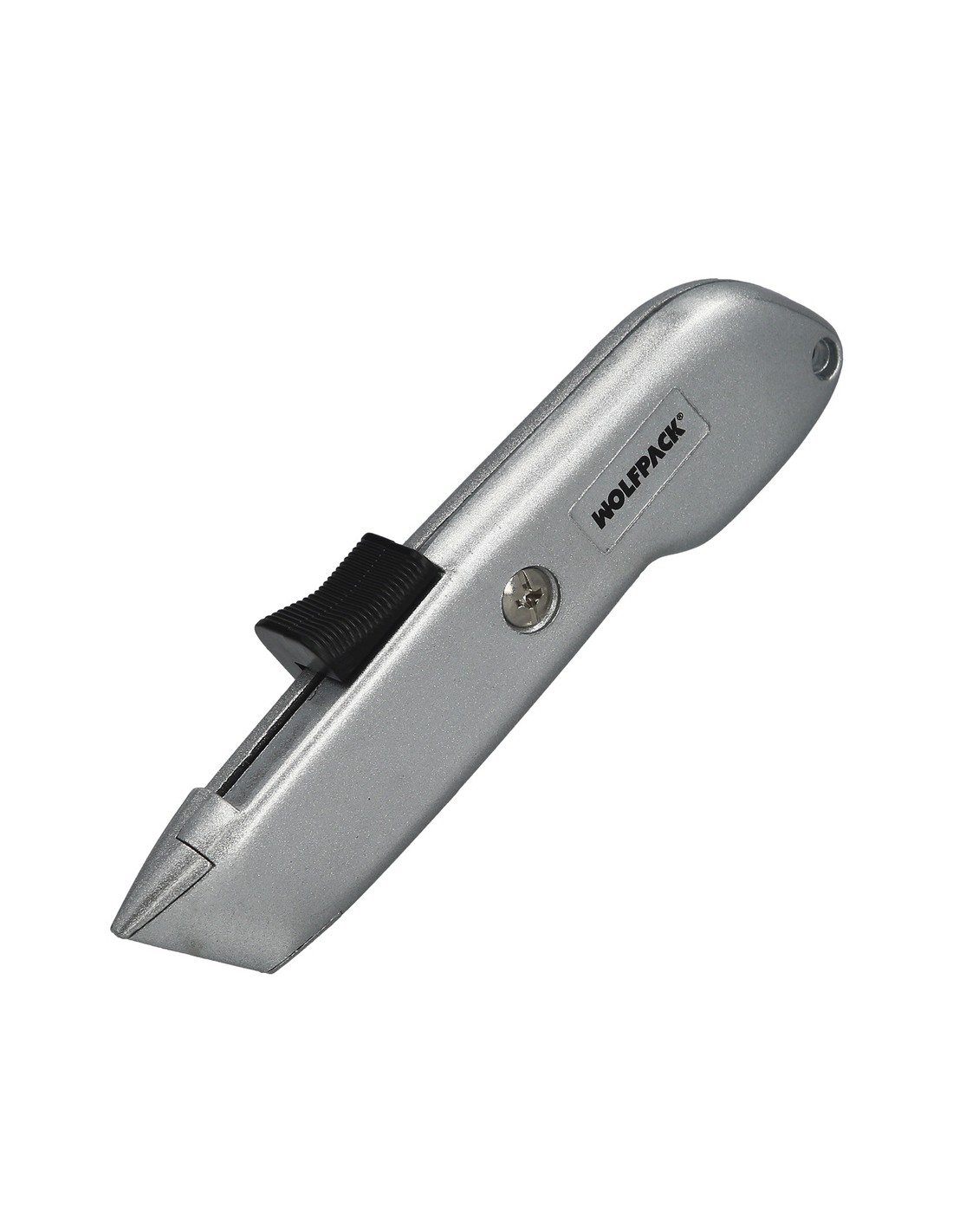 - Con el sistema retractil una vez que sueltas el desplazador de la cuchilla se retrae de forma automatica.