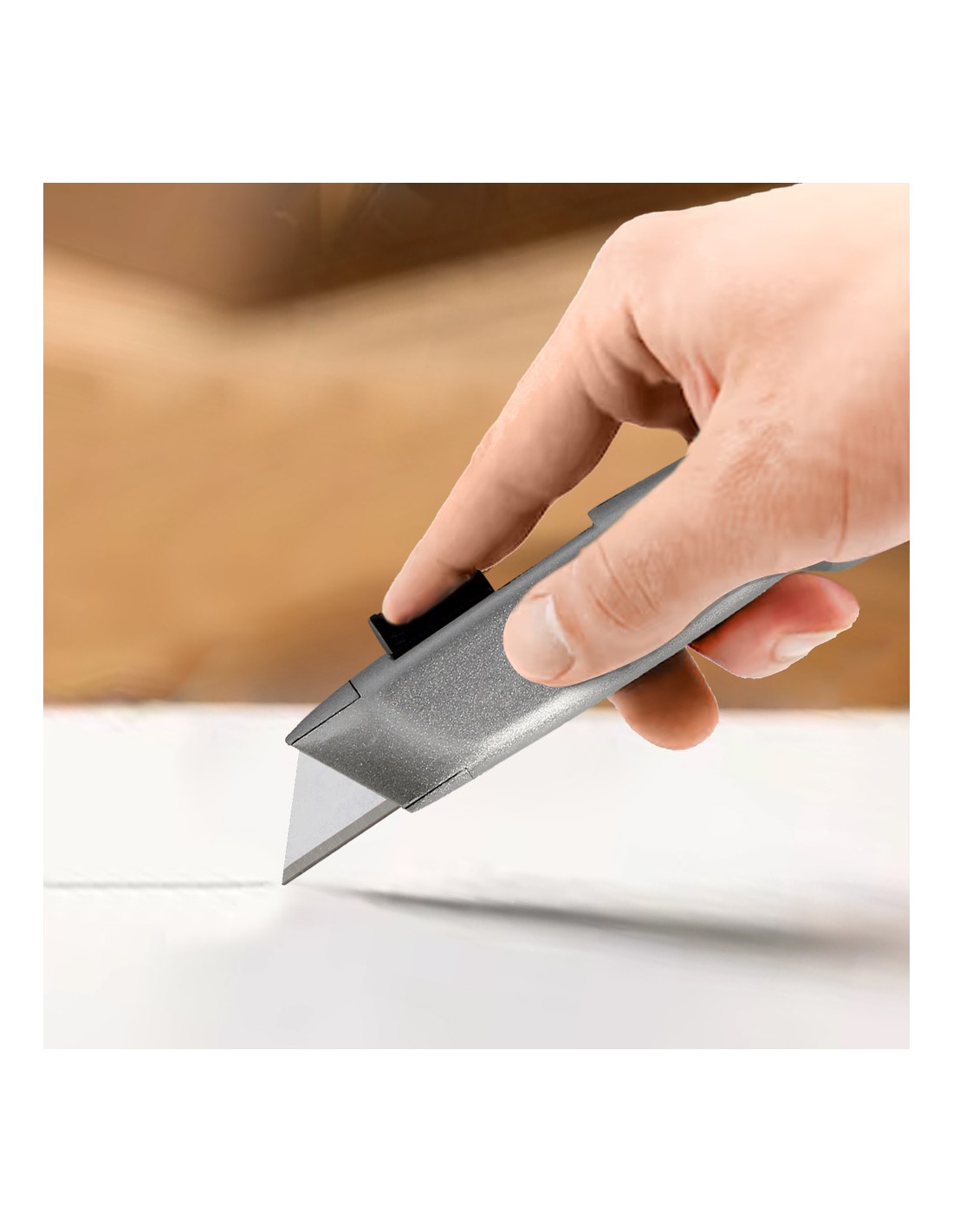 - Ideal para: corte de papel, cartulinas, manualidades, apertura de paquetes o cajas de cartón, corte de alfombras y tapicería, corte de vinilos desembalaje de productos, etc.